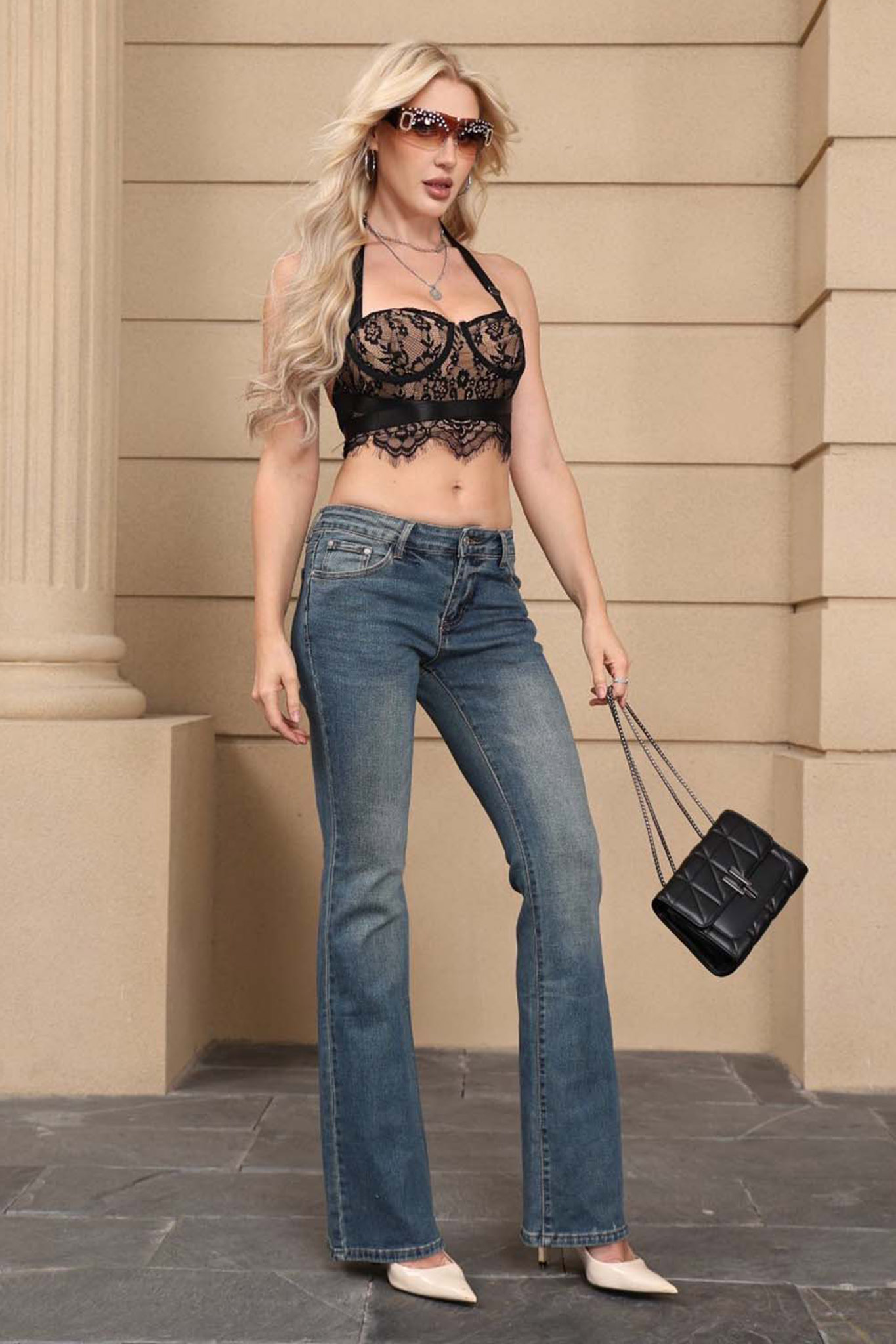 Tζιν παντελόνι σε γραμμή mid waist που καταλήγει σε καμπάνα. Αναδεικνύει τη θηλυκότητα και τις καμπύλες κάθε σωματότυπου.