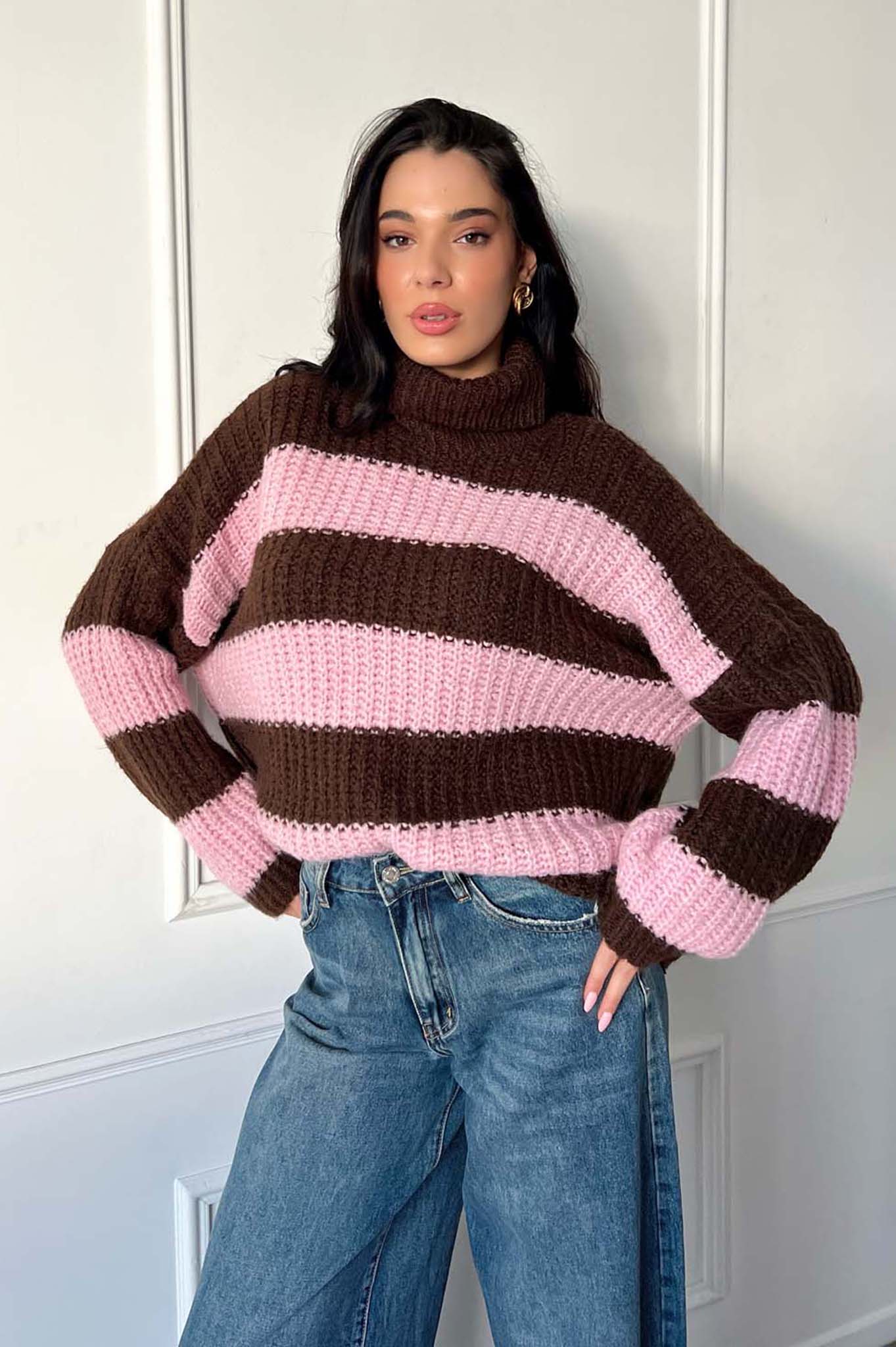Ριγέ πουλόβερ ζιβάγκο. Ιδανικό για τις κρύες ημέρες του χειμώνα. Μήκος 72cm, στήθος 70cm, μανίκι 50cm, 1 καφέ,1 κοκκινο,