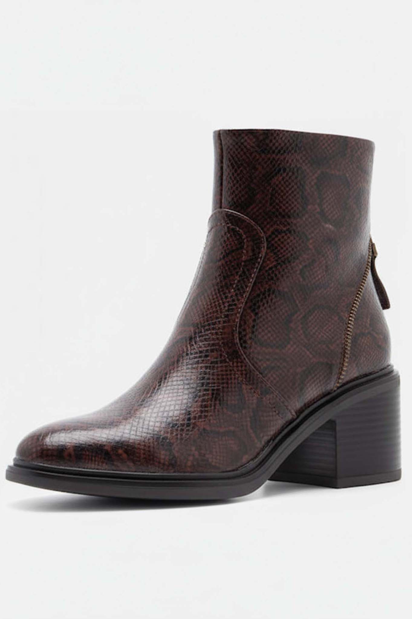 Μποτάκια με animal print και εξαιρετικής ποιότητα δερματίνη , διαθέτει χαμηλό τακούνι.