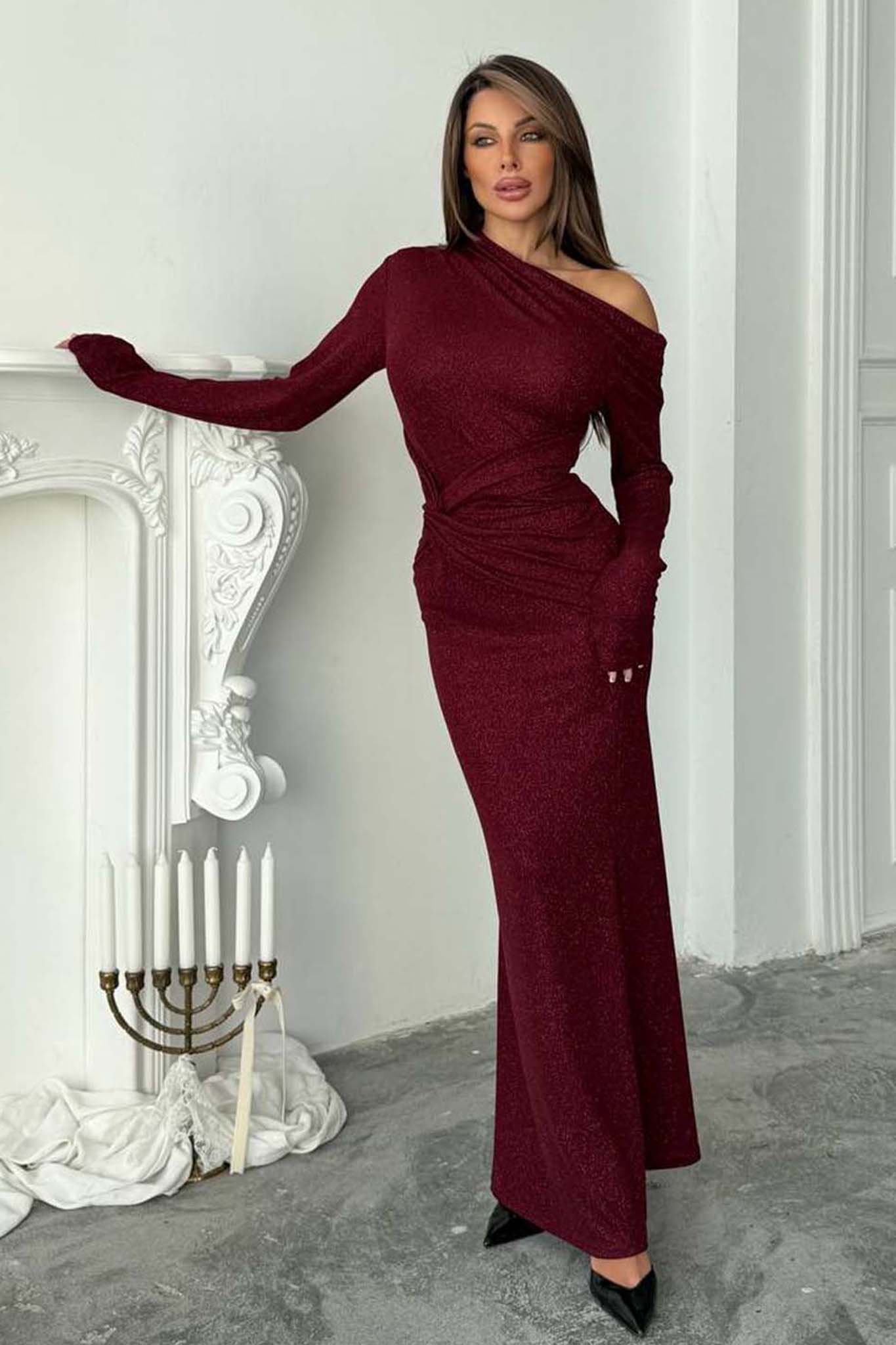 Rockμάξι φόρεμα lurex εφαρμοστό μπορντό