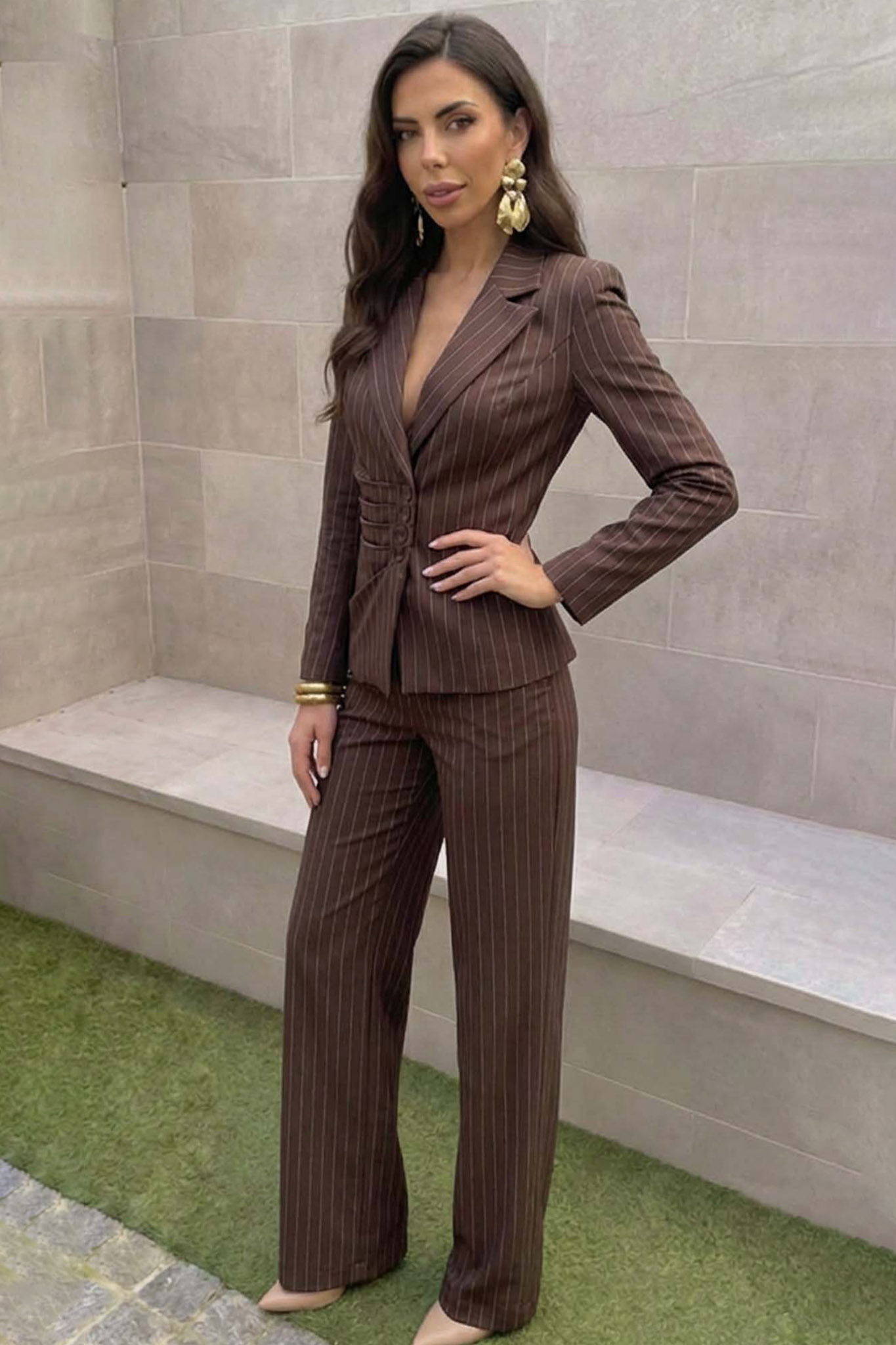 Ruxpinσετ σακάκι παντελόνι ριγέ καφέ