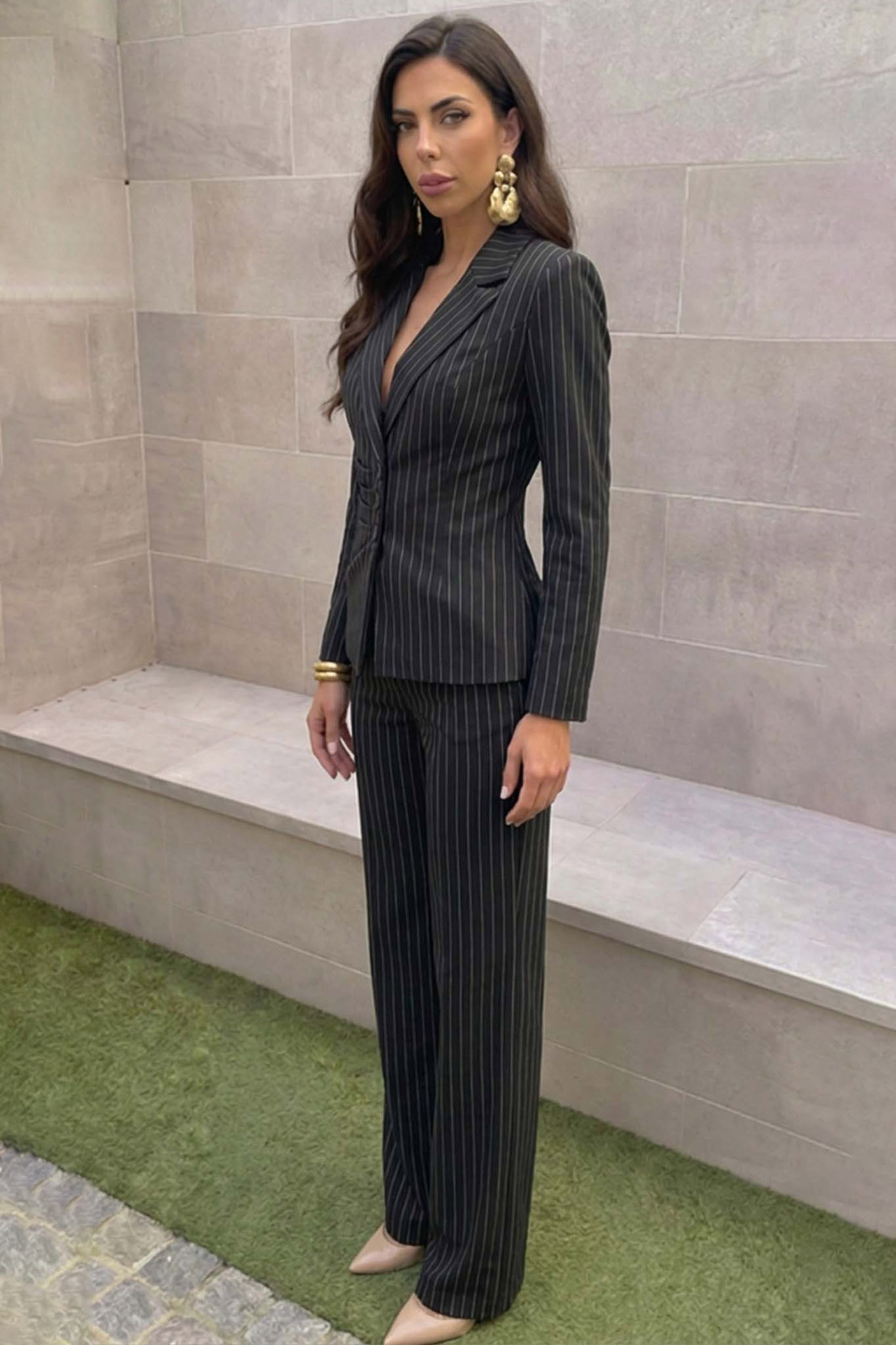 Σετ Κοστούμι Σακάκι με Σούρες & Παντελόνα. Διαθέτει μεσάτη εφαρμογή που κολακεύει τη μέση και ιδιαίτερες σούρες στο πλάι που δίνουν κίνηση και στυλ.