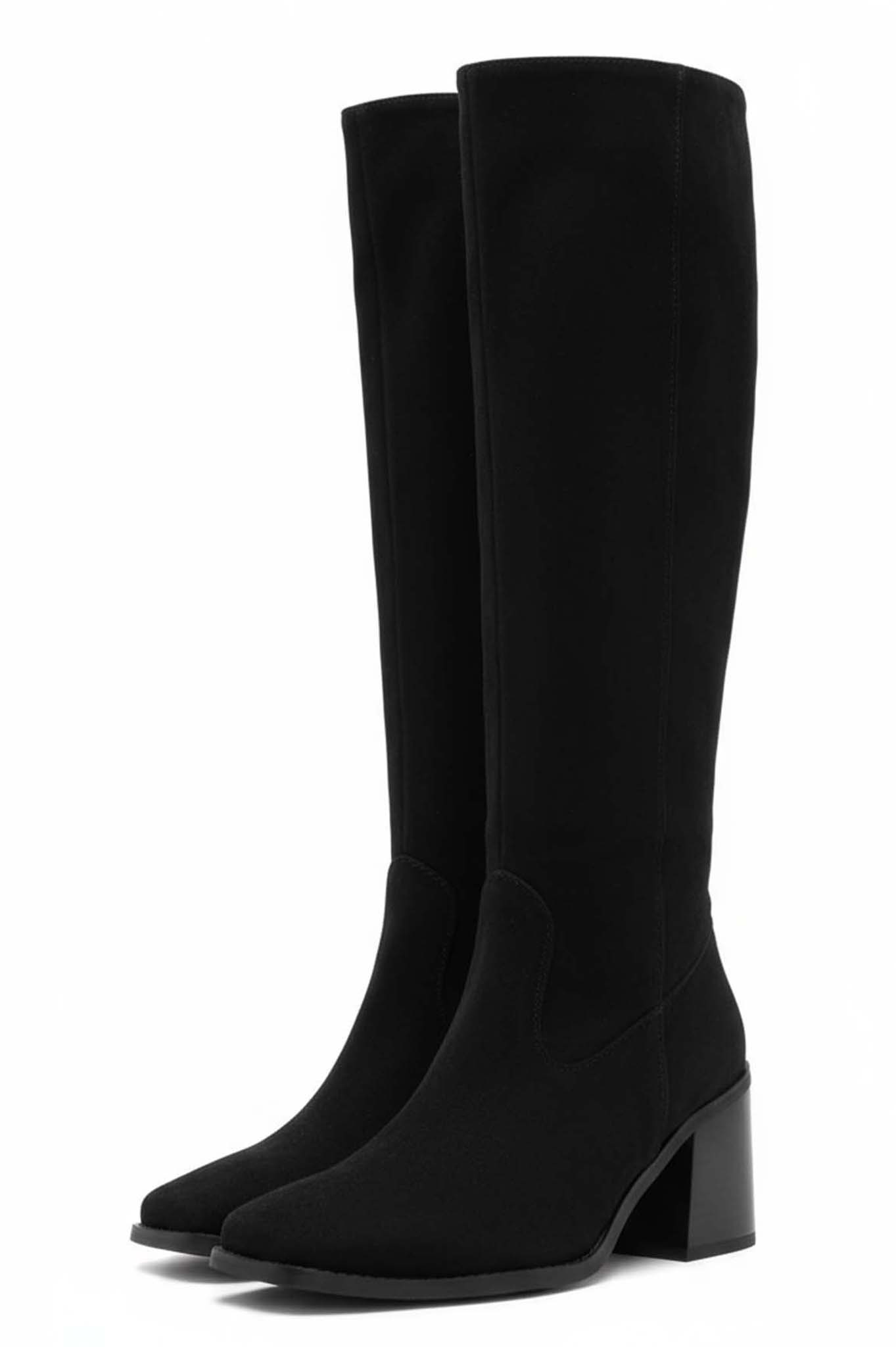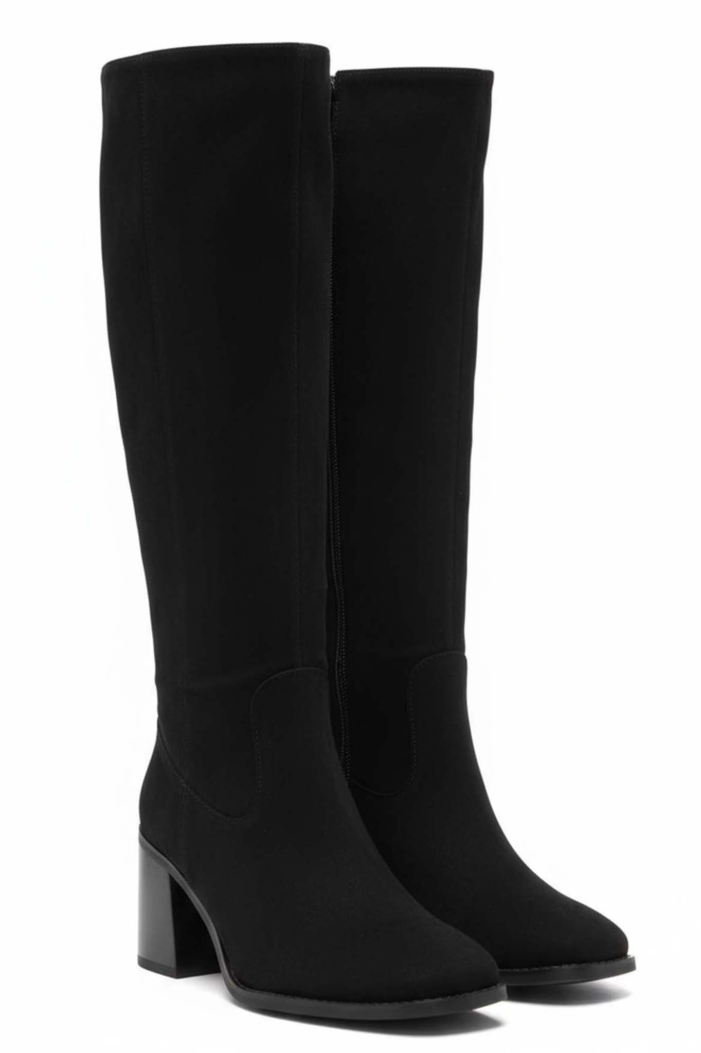 Ψηλές μπότες με μεσαίο τακούνι και sweat ύφανση.