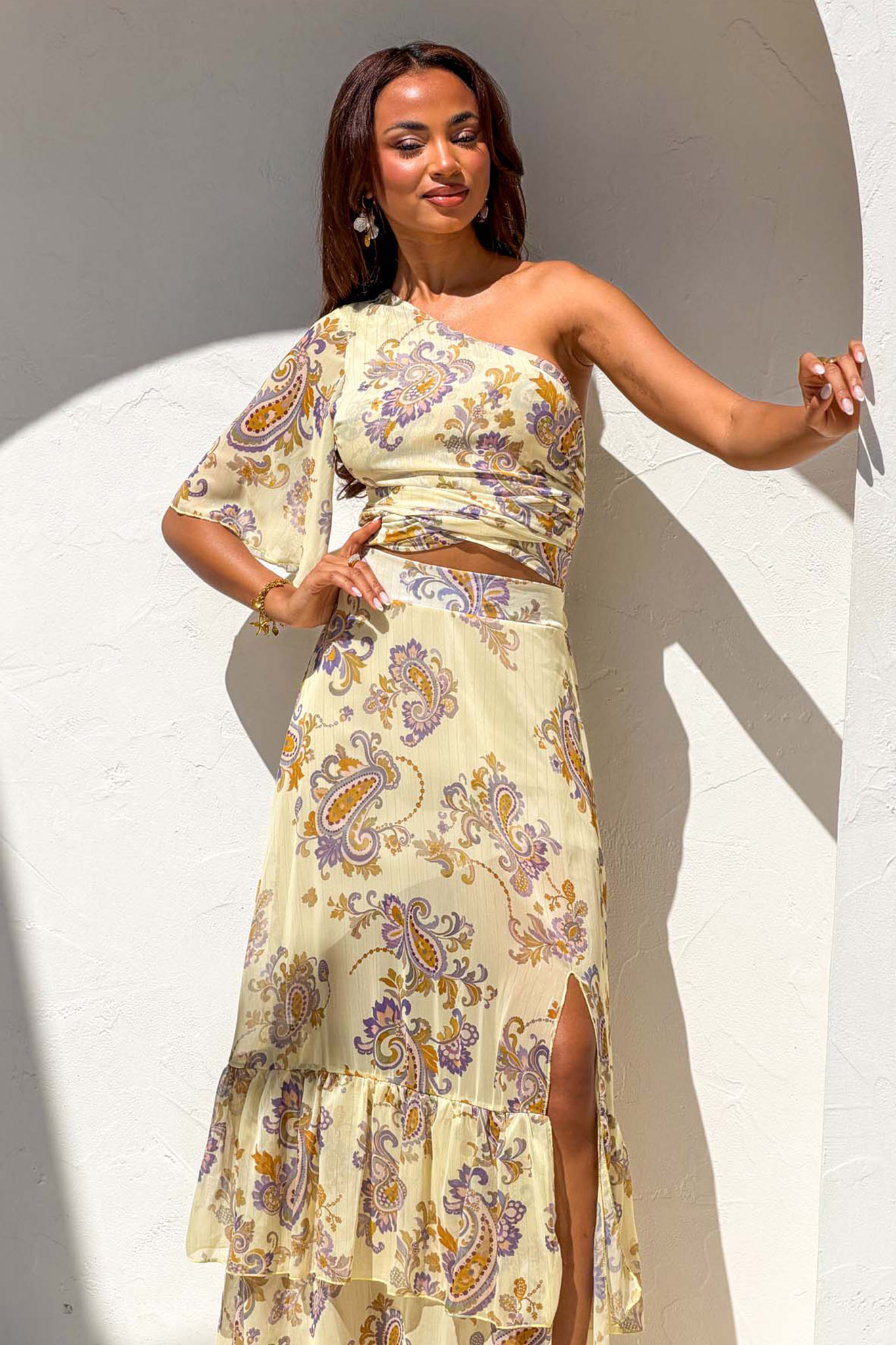 Saylorσετ τοπ – φούστα με λαχούρια κίτρινο