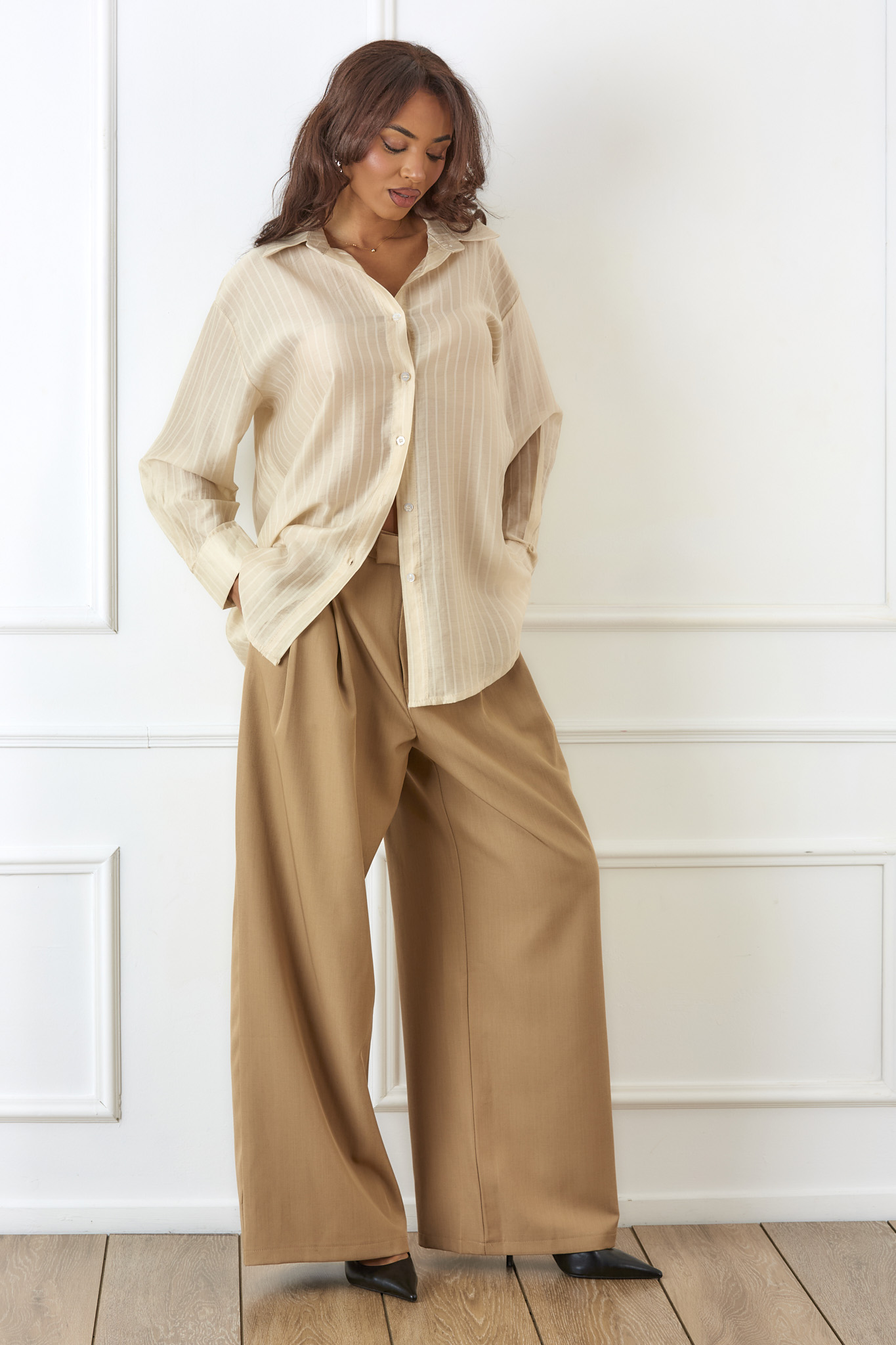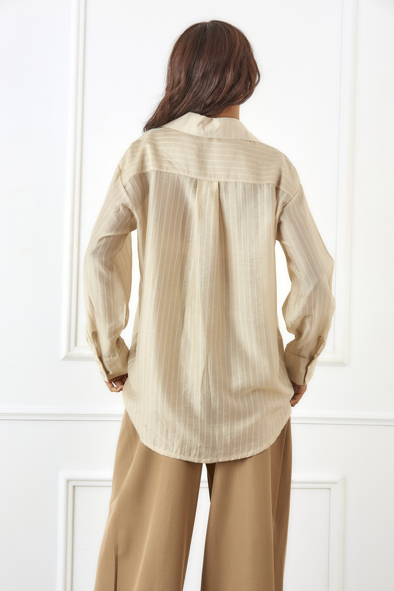 Selineπουκάμισο ριγέ με κλασσικό γιακά μπεζ