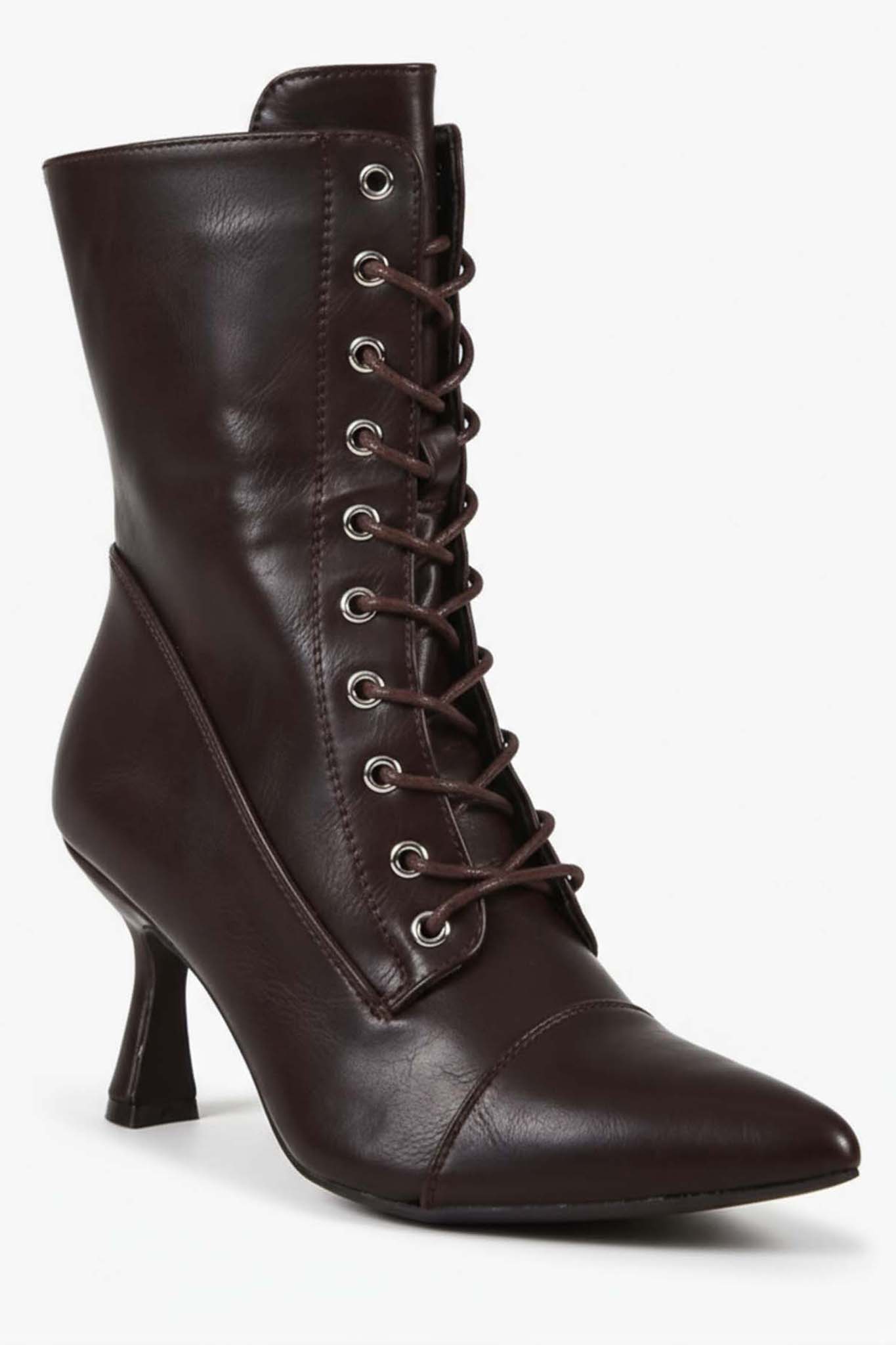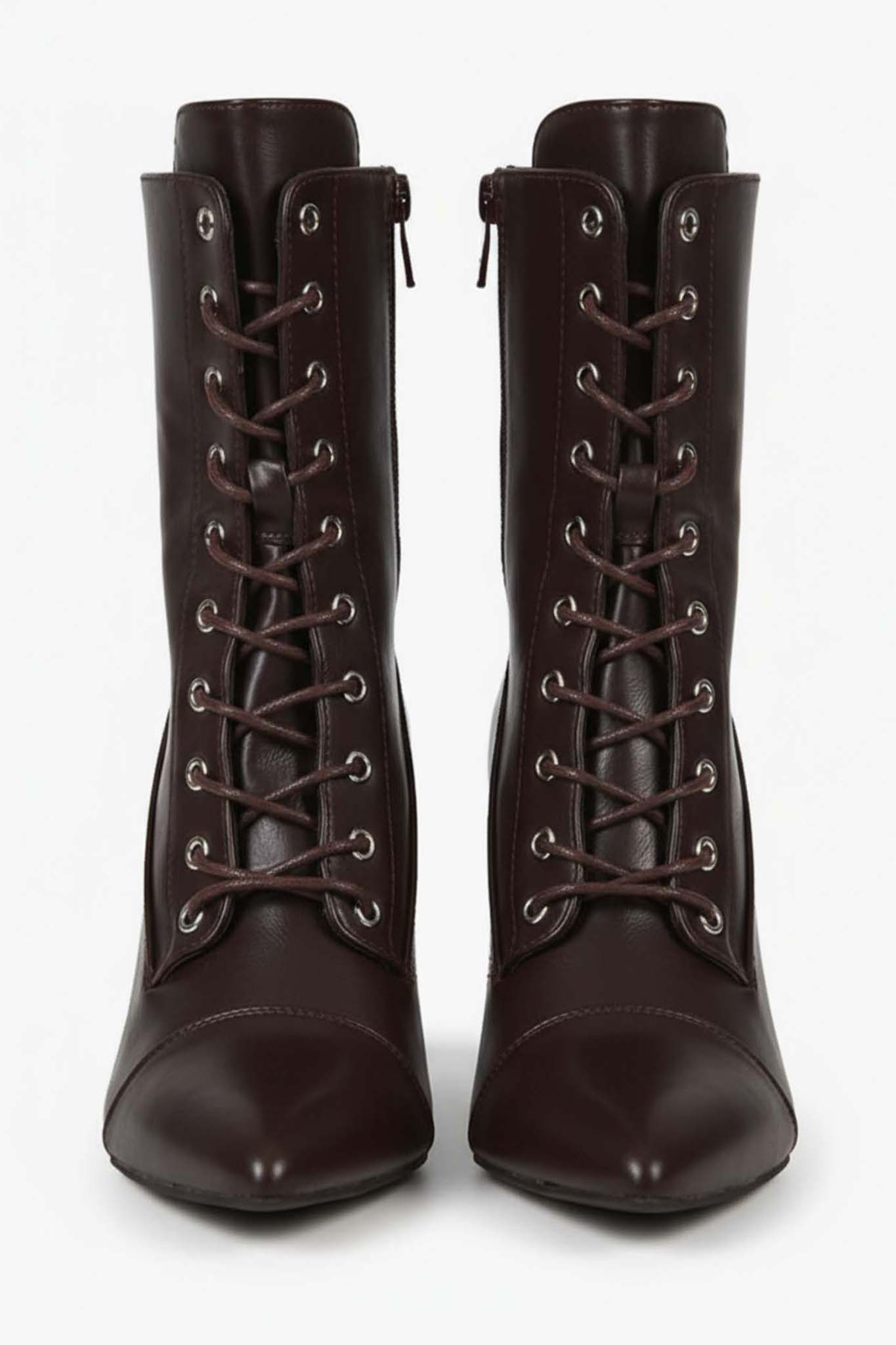 Μποτάκια με κορδόνια και μεσαίου μεγέθους τακούνι. Μπροστινό μέρος με μύτη.