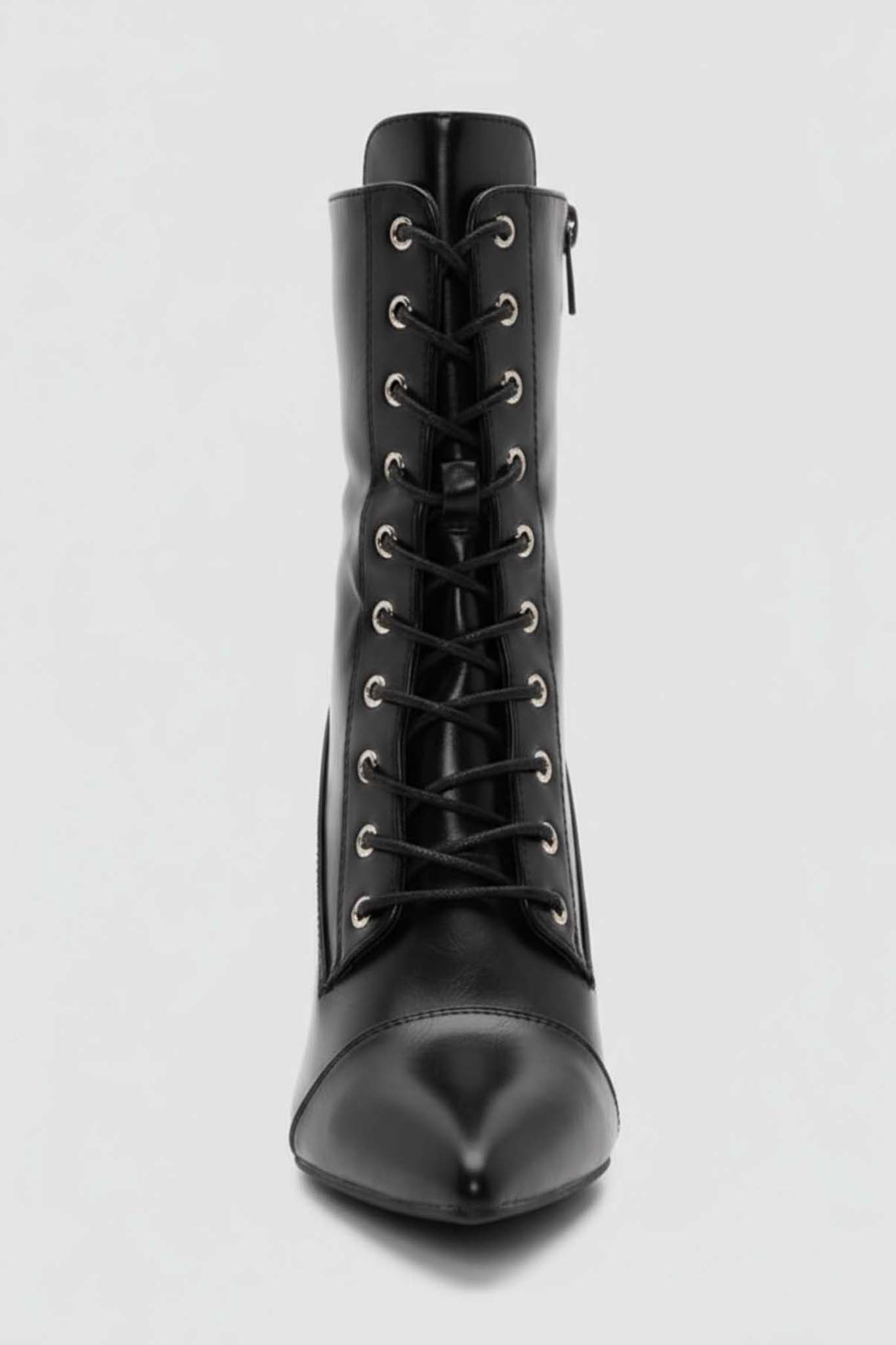 Μποτάκια με κορδόνια και μεσαίου μεγέθους τακούνι. Μπροστινό μέρος με μύτη.
