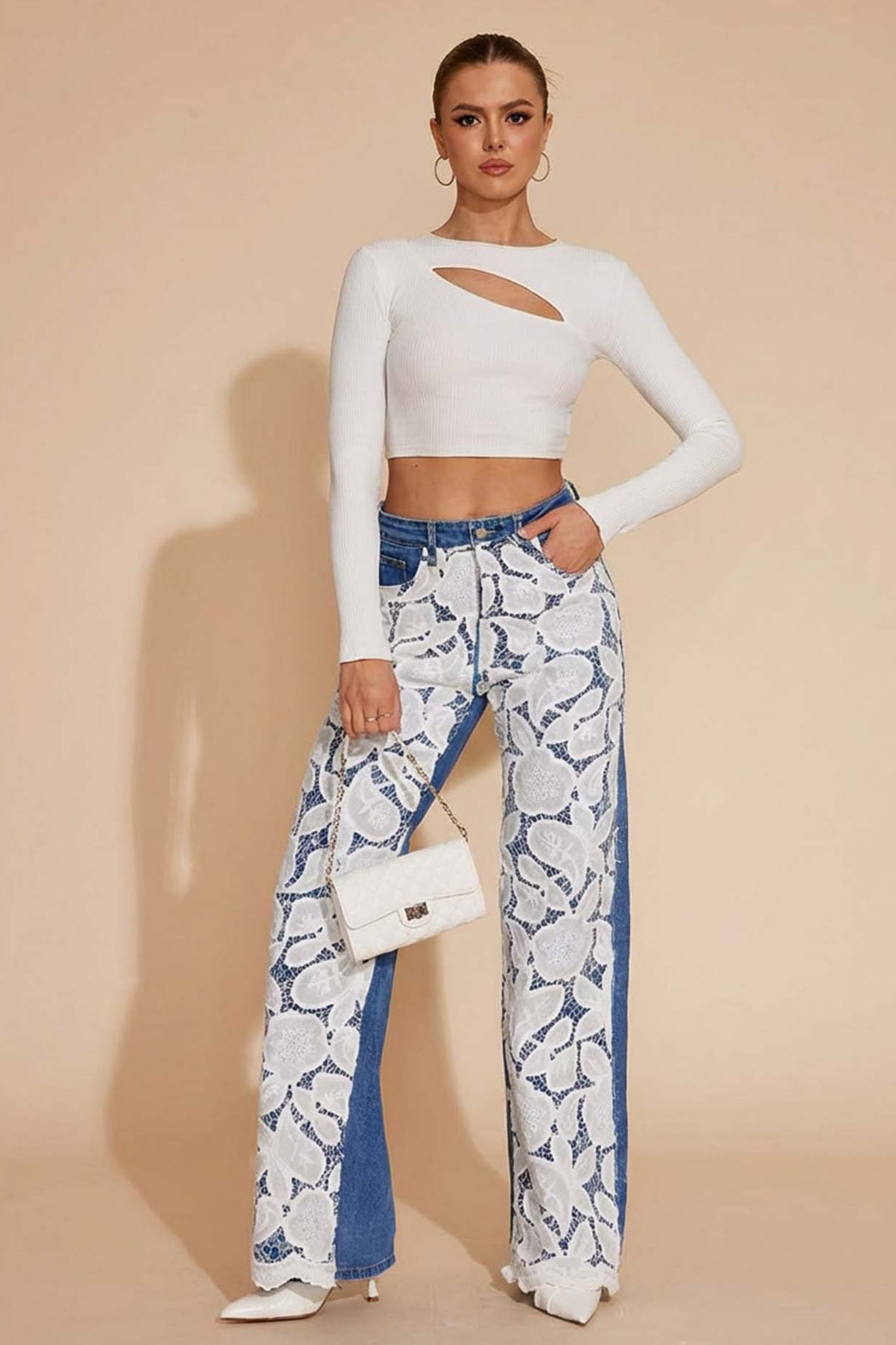 Τζιν παντελόνι με κέντημα στην μπροστινή μεριά. Δίνει μία ιδαίτερη πινελιά στο παντελόνι.