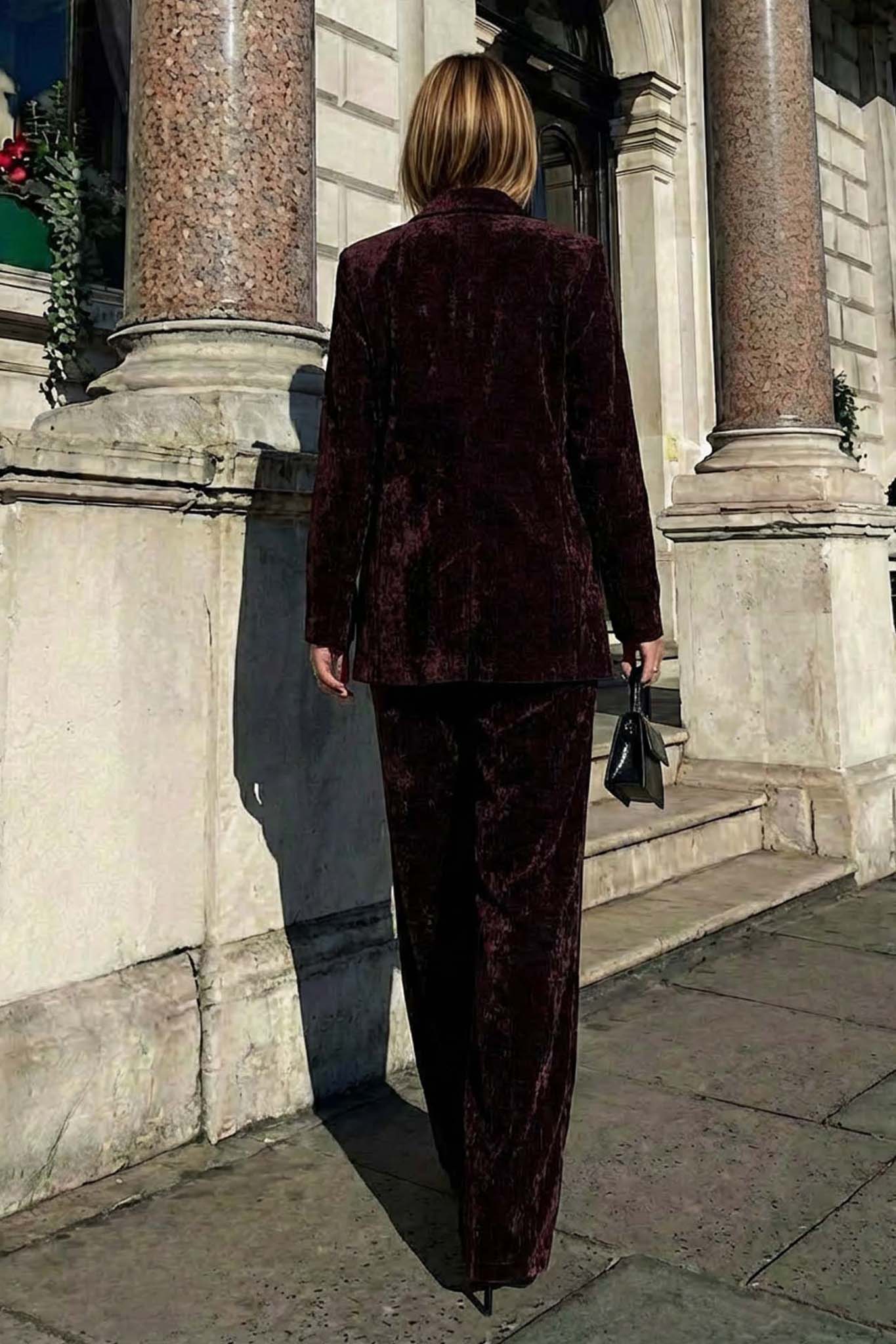 Σετ που αποτελείται από σακάκι και παντελόνι. Σε βελούδινη ύφανση. Oversized εφαρμογή στο σακάκι με βάτες & κανονική στο παντελόνι. Προσφέρει ένα luxury αποτέλεσμα. Ιδανική επιλογή για: γιορτινές επίσημες περιστάσεις, night out, προσεγμένες εμφανίσεις. Συνδιασμός με μπότα ή τακούνι.
