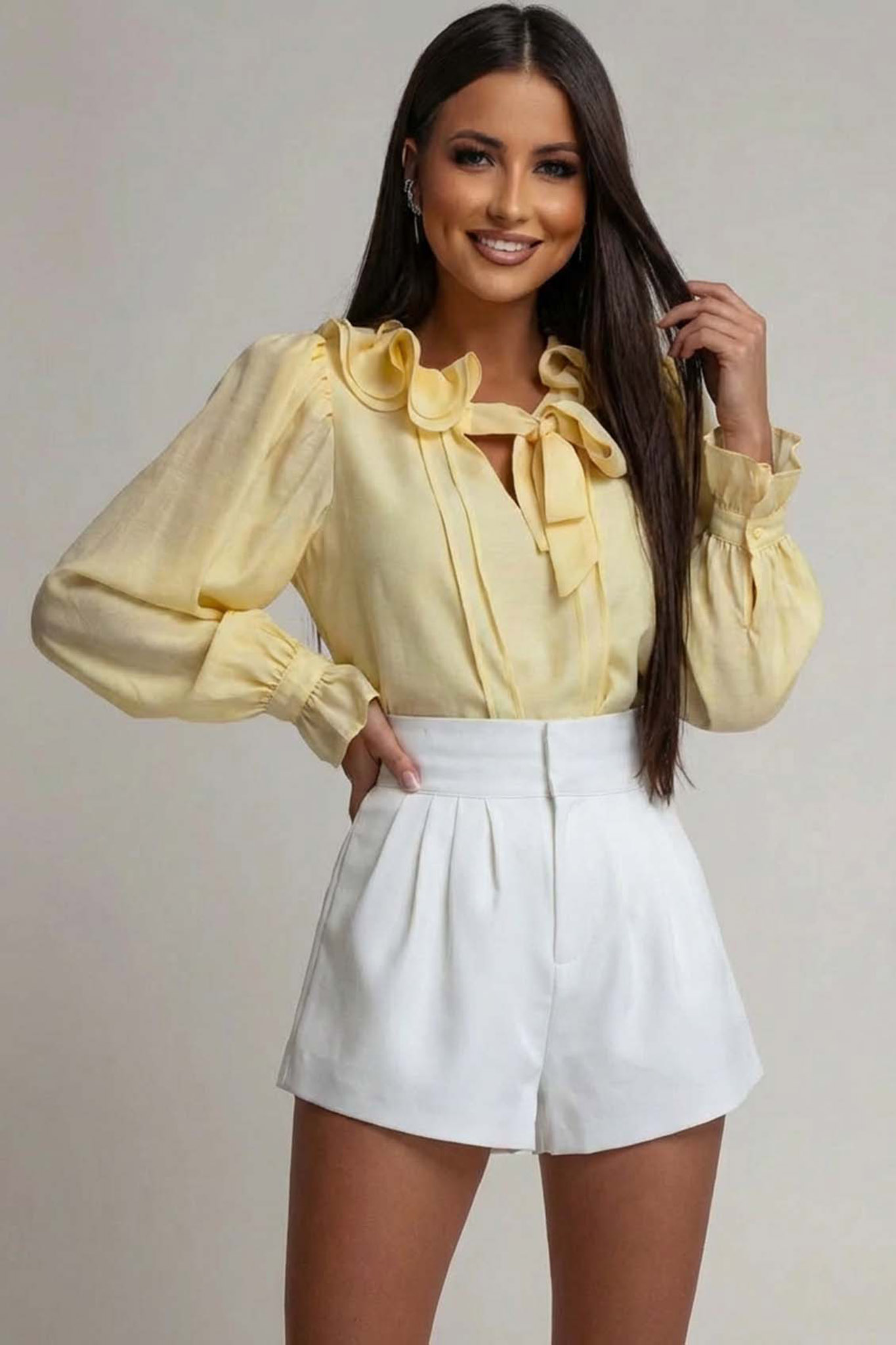 Ψηλόμεσο σορτς με διακριτικές πιέτες και κανονική εφαρμογή. Κατασκευασμένο από ανάλαφρο ύφασμα, προσφέρει άνεση και στυλ, ιδανικό για αέρινες, καλοκαιρινές εμφανίσεις.