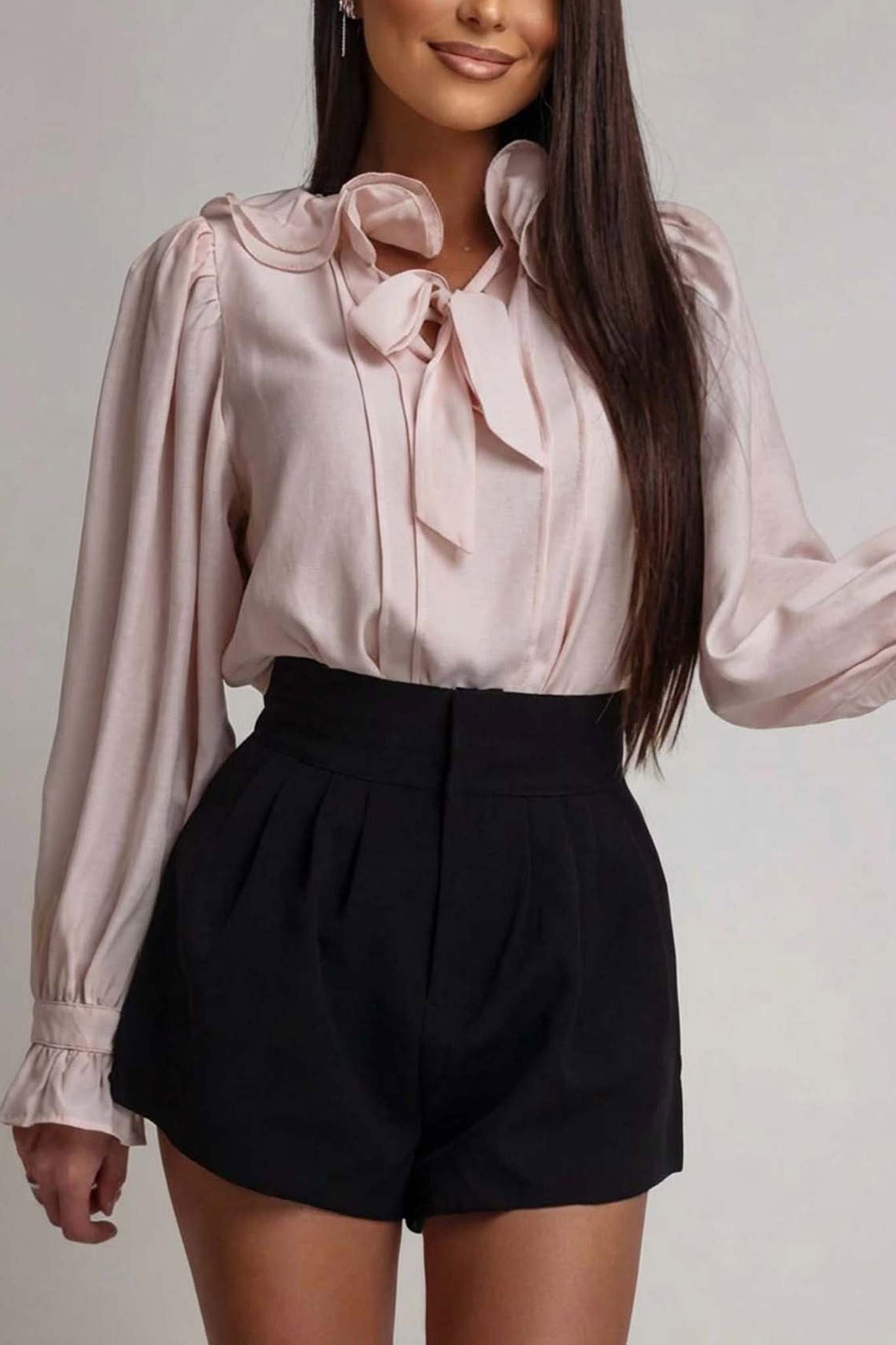 Ψηλόμεσο σορτς με διακριτικές πιέτες και κανονική εφαρμογή. Κατασκευασμένο από ανάλαφρο ύφασμα, προσφέρει άνεση και στυλ, ιδανικό για αέρινες, καλοκαιρινές εμφανίσεις.