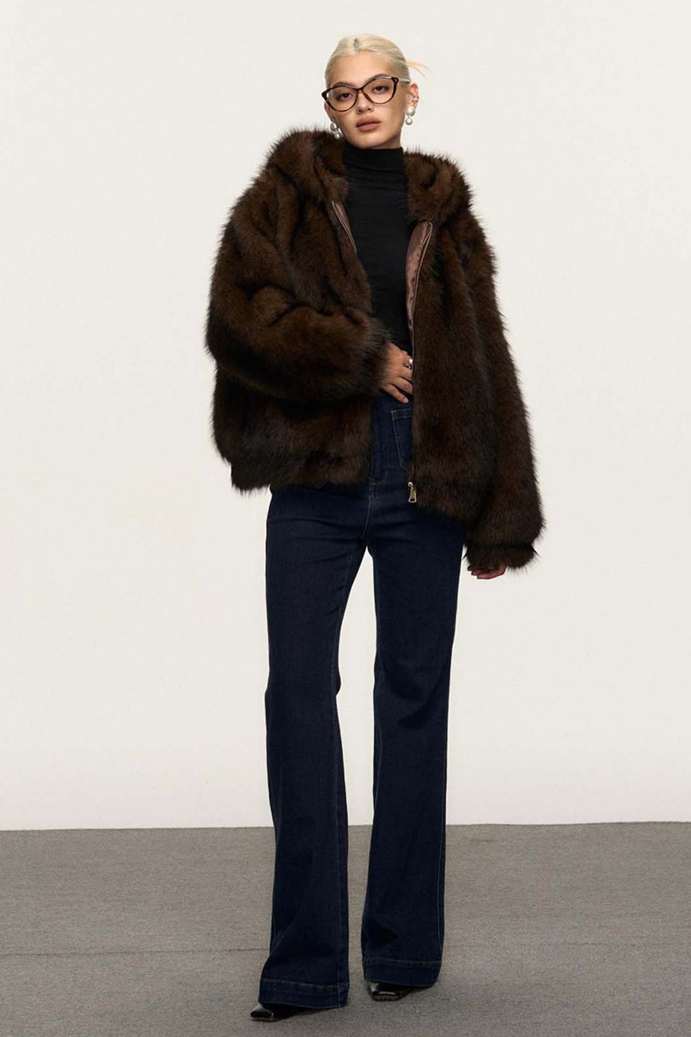 SibelleΚοντή Οικολογική Γούνα καφέ