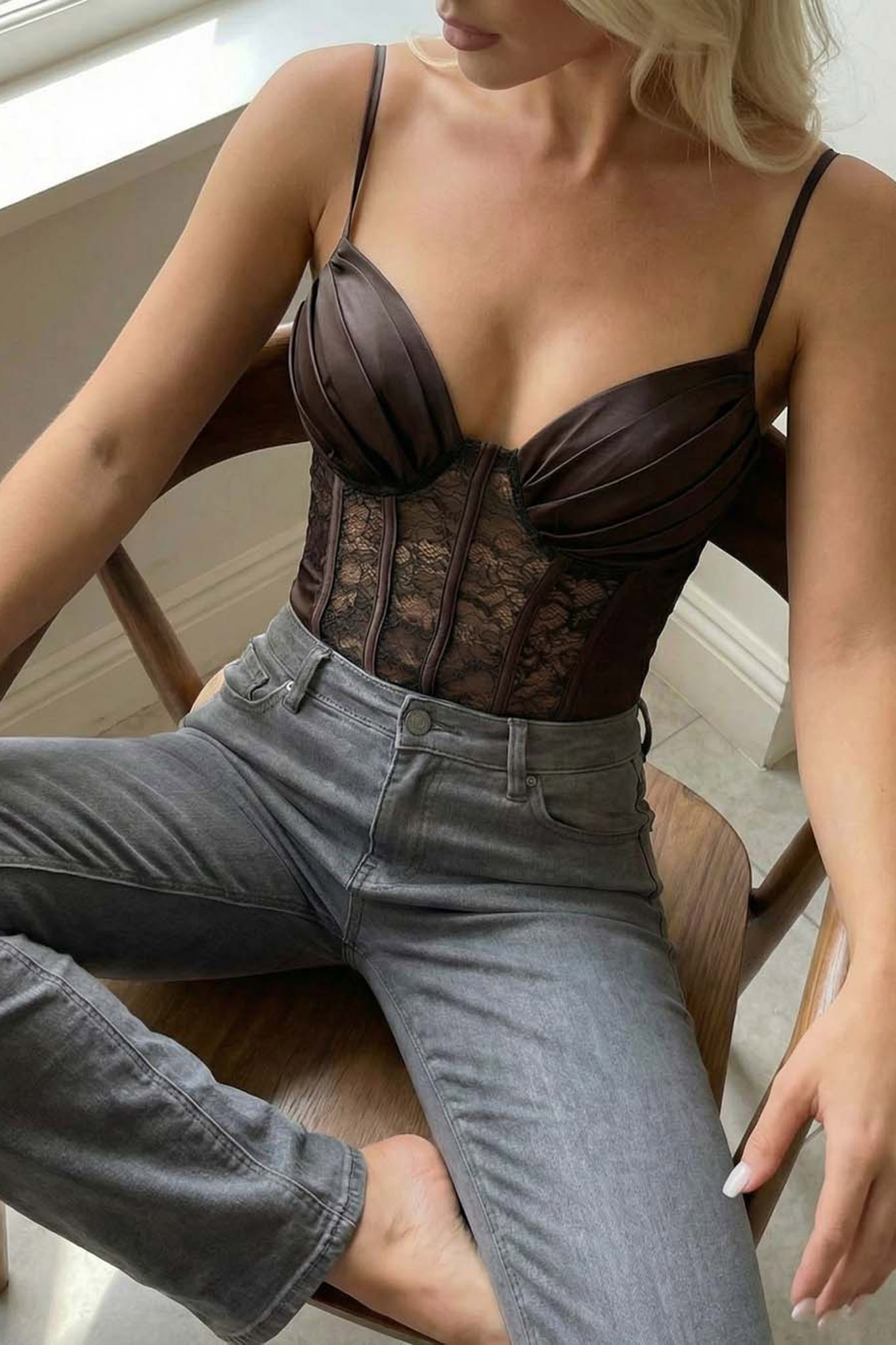 Kορμάκι με cups και εφέ κορσέ. Μήκος 70cm, στήθος 80cm