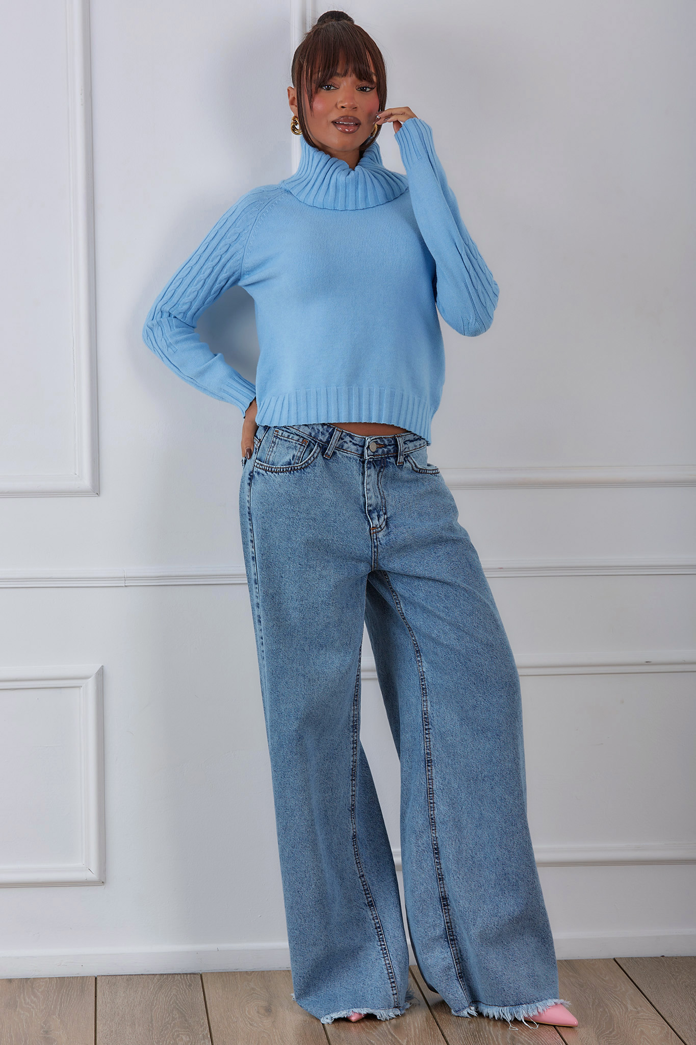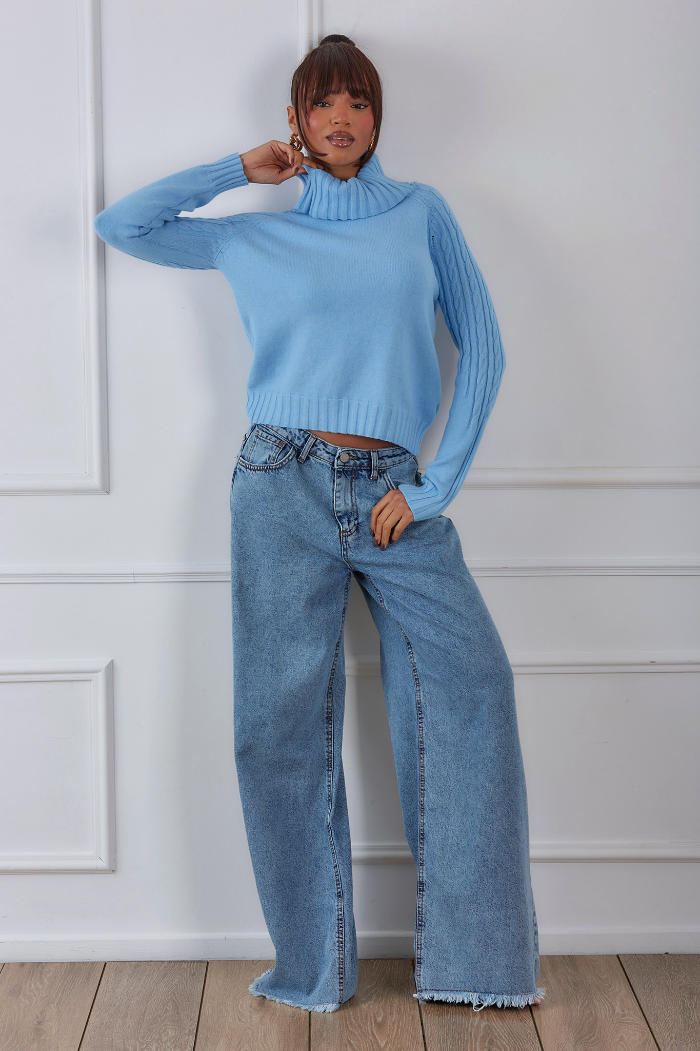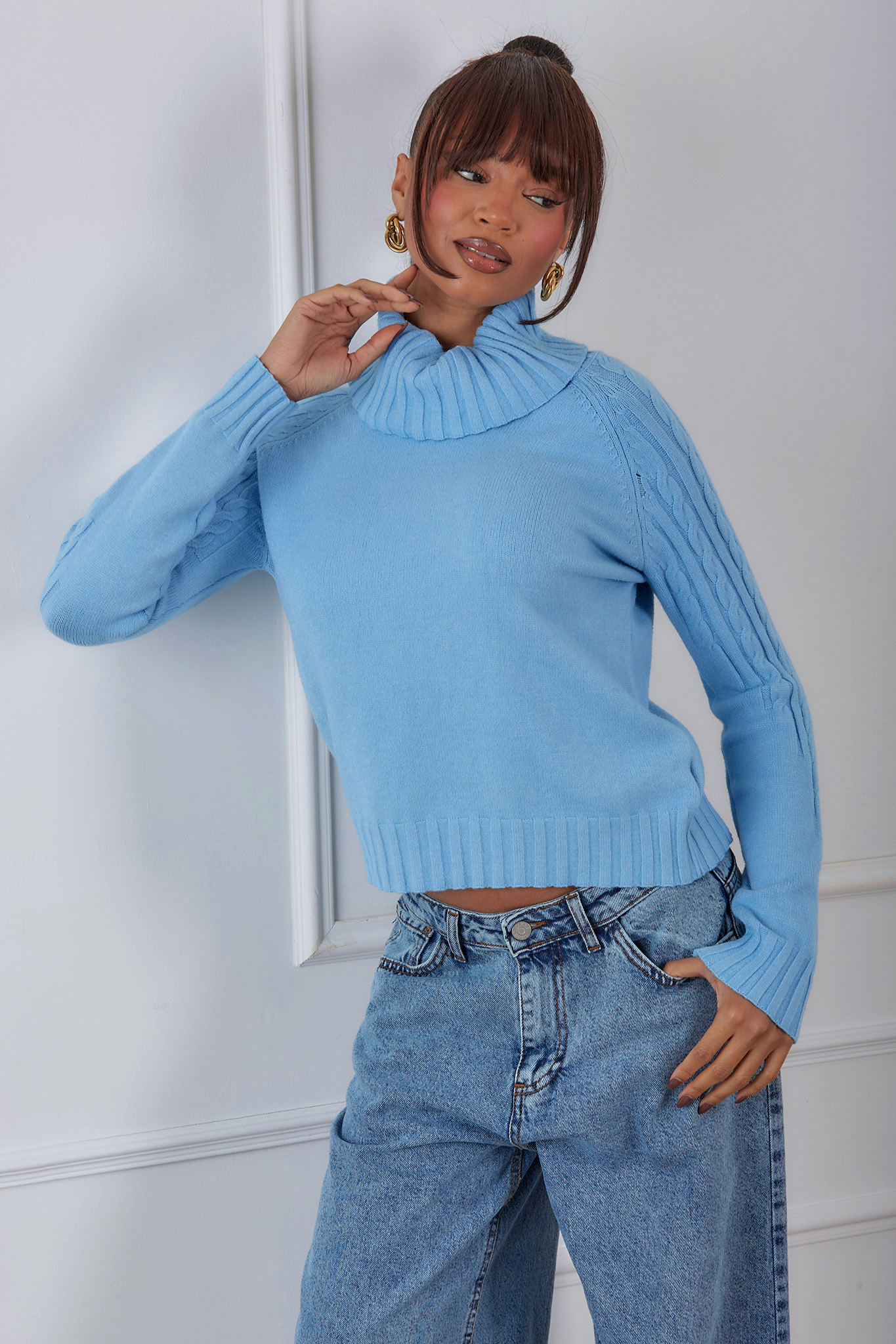 Ζεστό και κομψό πλεκτό πουλόβερ με ψηλό ζιβάγκο, ιδανικό για τις κρύες μέρες του χειμώνα. Διαθέτει μακριά μανίκια με διακριτικό πλεκτό σχέδιο στα πλαϊνά και ελαστικό τελείωμα στη μέση και στα μανίκια για άνετη εφαρμογή. Κατασκευασμένο από μαλακό, ποιοτικό ύφασμα που προσφέρει άνεση και στυλ όλη μέρα. Μήκος 52cm, στήθος 55cm, μανίκι 58cm.