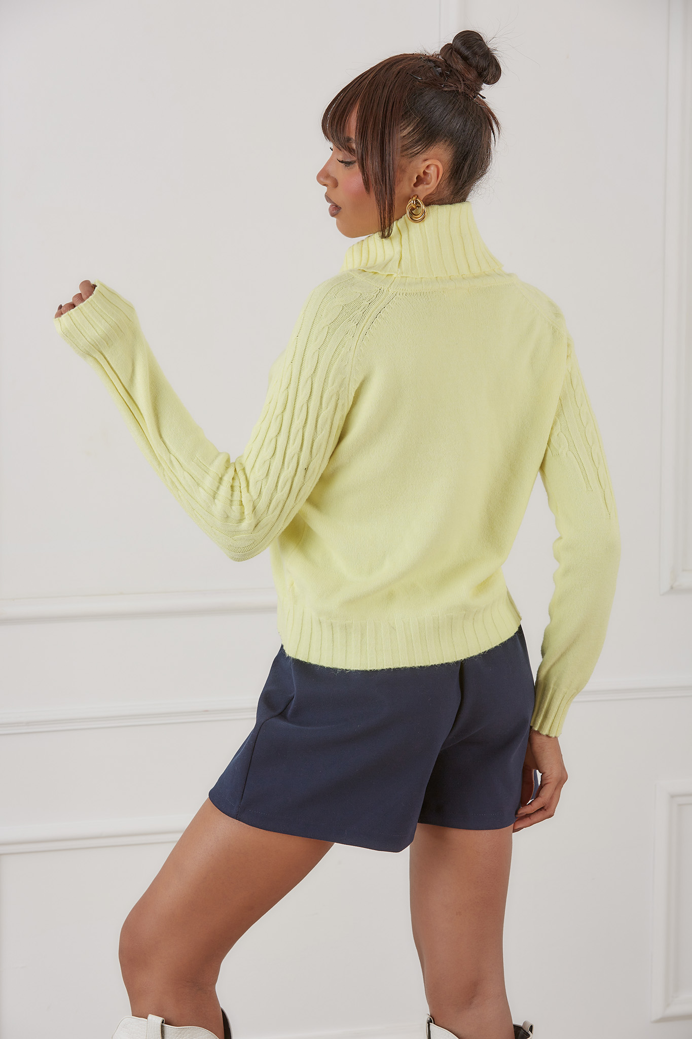 Ζεστό και κομψό πλεκτό πουλόβερ με ψηλό ζιβάγκο, ιδανικό για τις κρύες μέρες του χειμώνα. Διαθέτει μακριά μανίκια με διακριτικό πλεκτό σχέδιο στα πλαϊνά και ελαστικό τελείωμα στη μέση και στα μανίκια για άνετη εφαρμογή. Κατασκευασμένο από μαλακό, ποιοτικό ύφασμα που προσφέρει άνεση και στυλ όλη μέρα. Μήκος 52cm, στήθος 55cm, μανίκι 58cm.