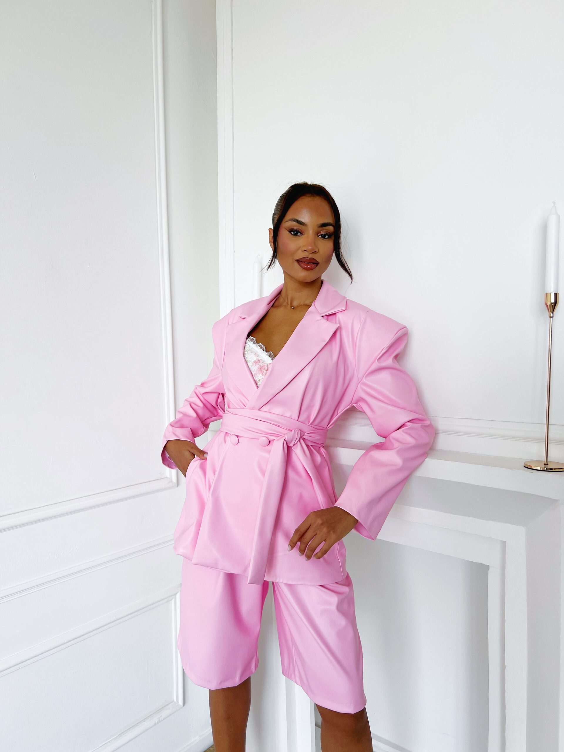 Spikeσετ σακάκι βερμούδα από δερματίνη ροζ
