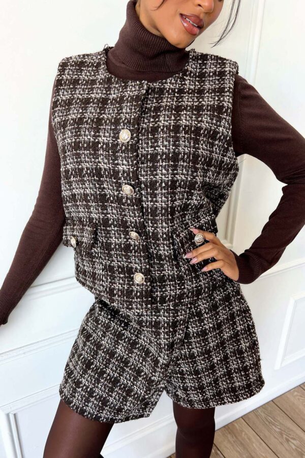 Σετ σακάκι-παντελόνι. Σακάκι σε άνετη γραμμή με πέτο, βάτες στους ώμους, ζώνη και κουμπάκια. Παντελόνι ψηλόμεσο σε ίσια γραμμή με λάστιχο στη μέση. Σακάκι Μήκος 75cm μανίκι 62cm στήθος 49cm Παντελόνι Μήκος 109cm μέση 39cm