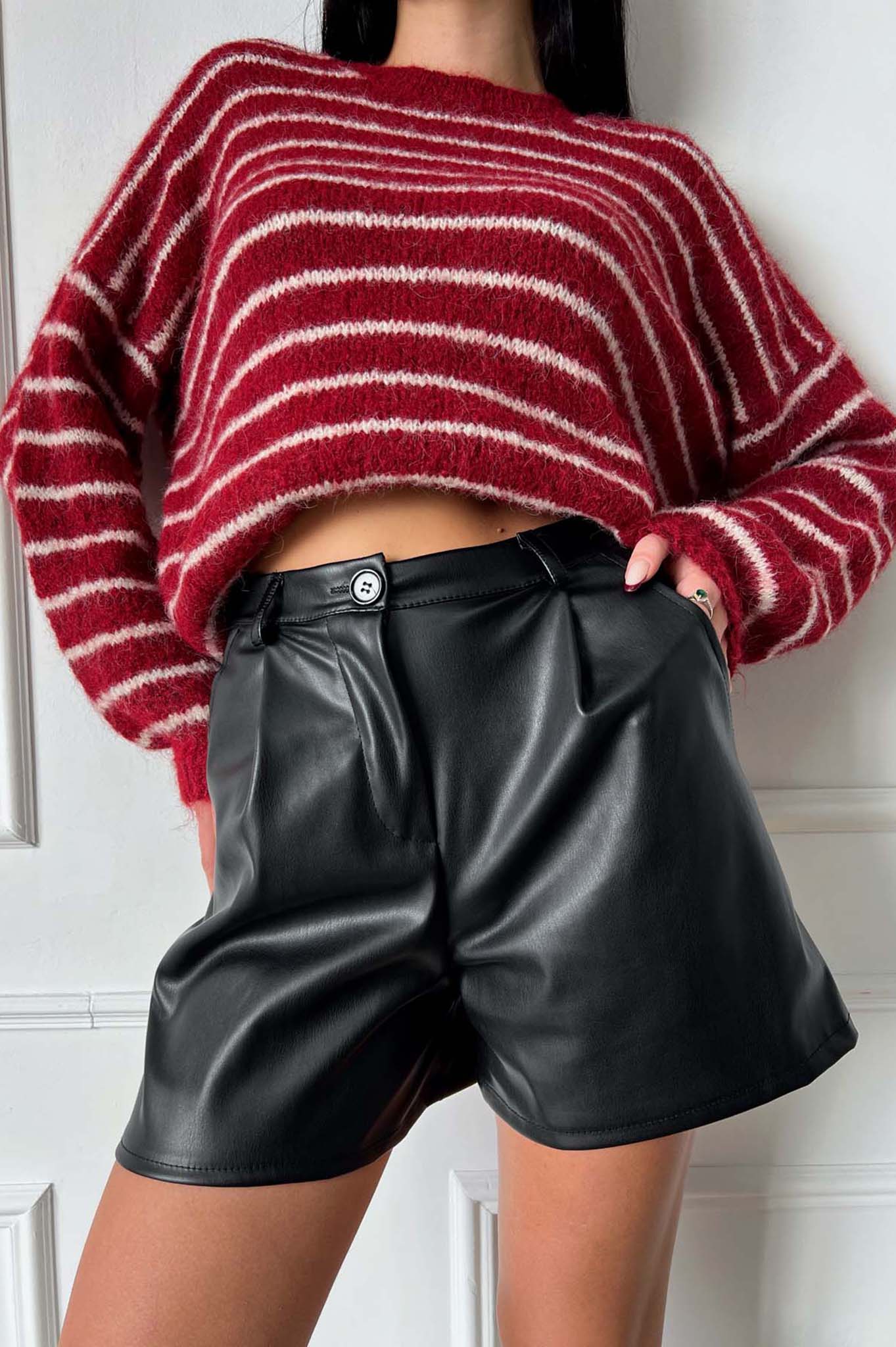 Stampσορτς από οικολογικό δέρμα μαύρο