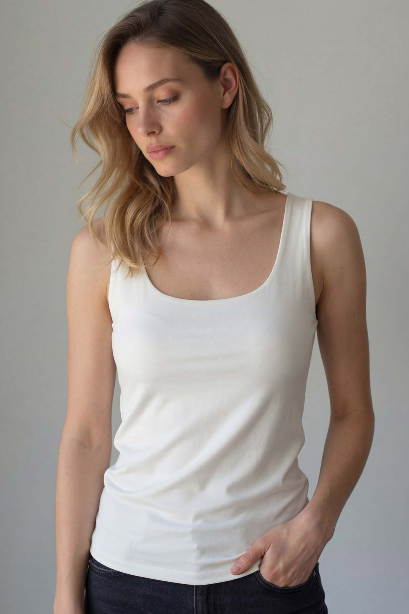 Αμάνικο τοπ με στρογγυλή λαιμόκοψη για καθημερινές εμφανίσεις.