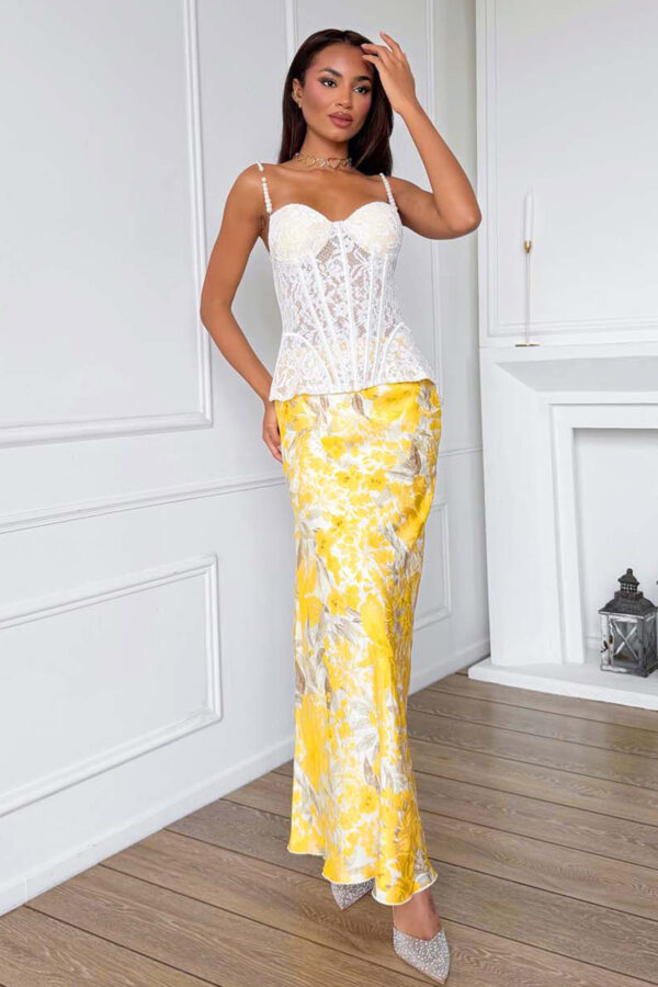 Φούστα σε μίνι γραμμή, φλοράλ με λάστιχο στη μέση. Προσφέρει θηλυκό αποτέλεσμα. Ιδανική επιλογή για καθημερινές εμφανίσεις. Μήκος 55cm μέση 33cm