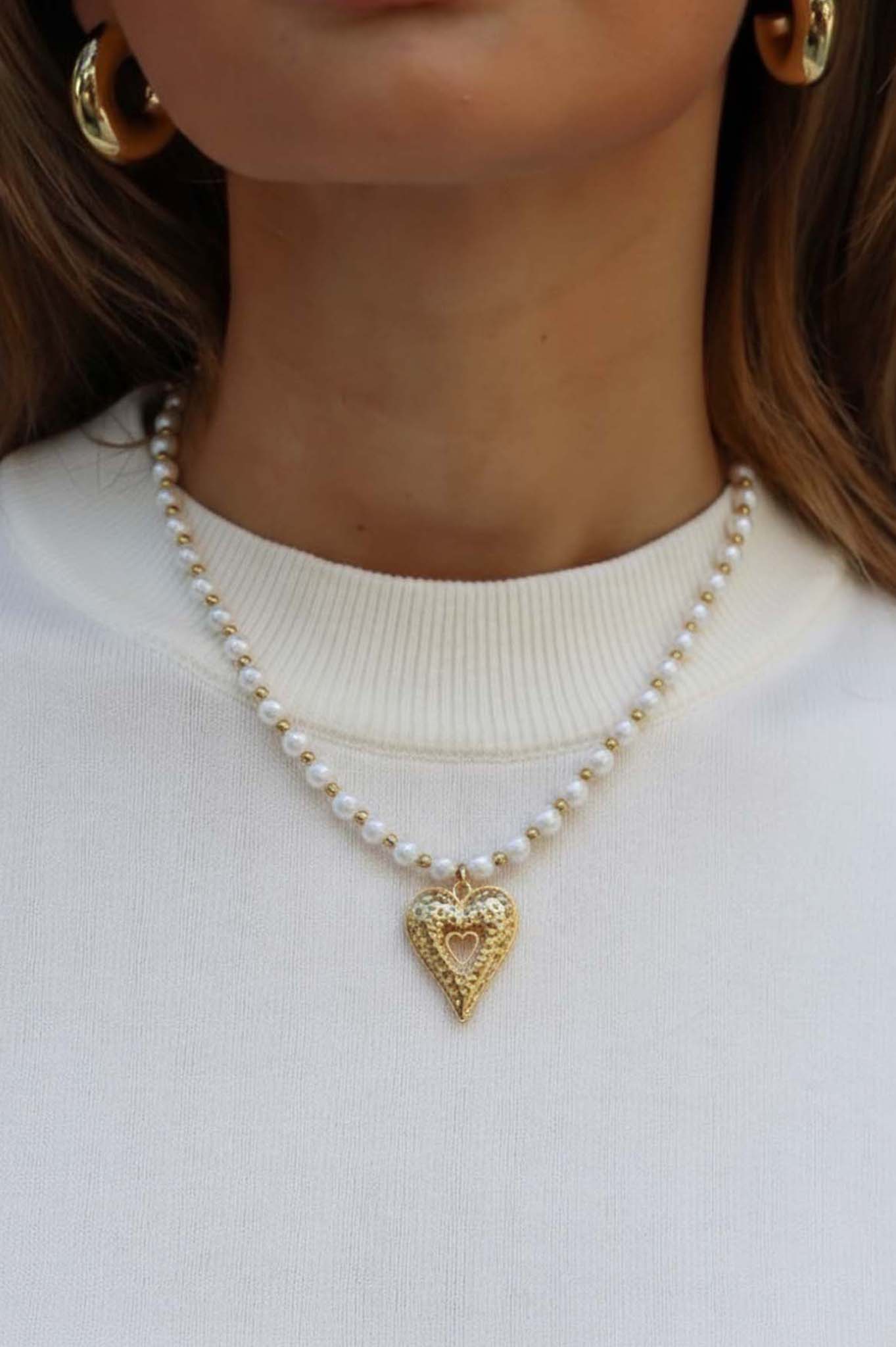 Κολιέ με πέρλες και χρυσή καρδούλα.