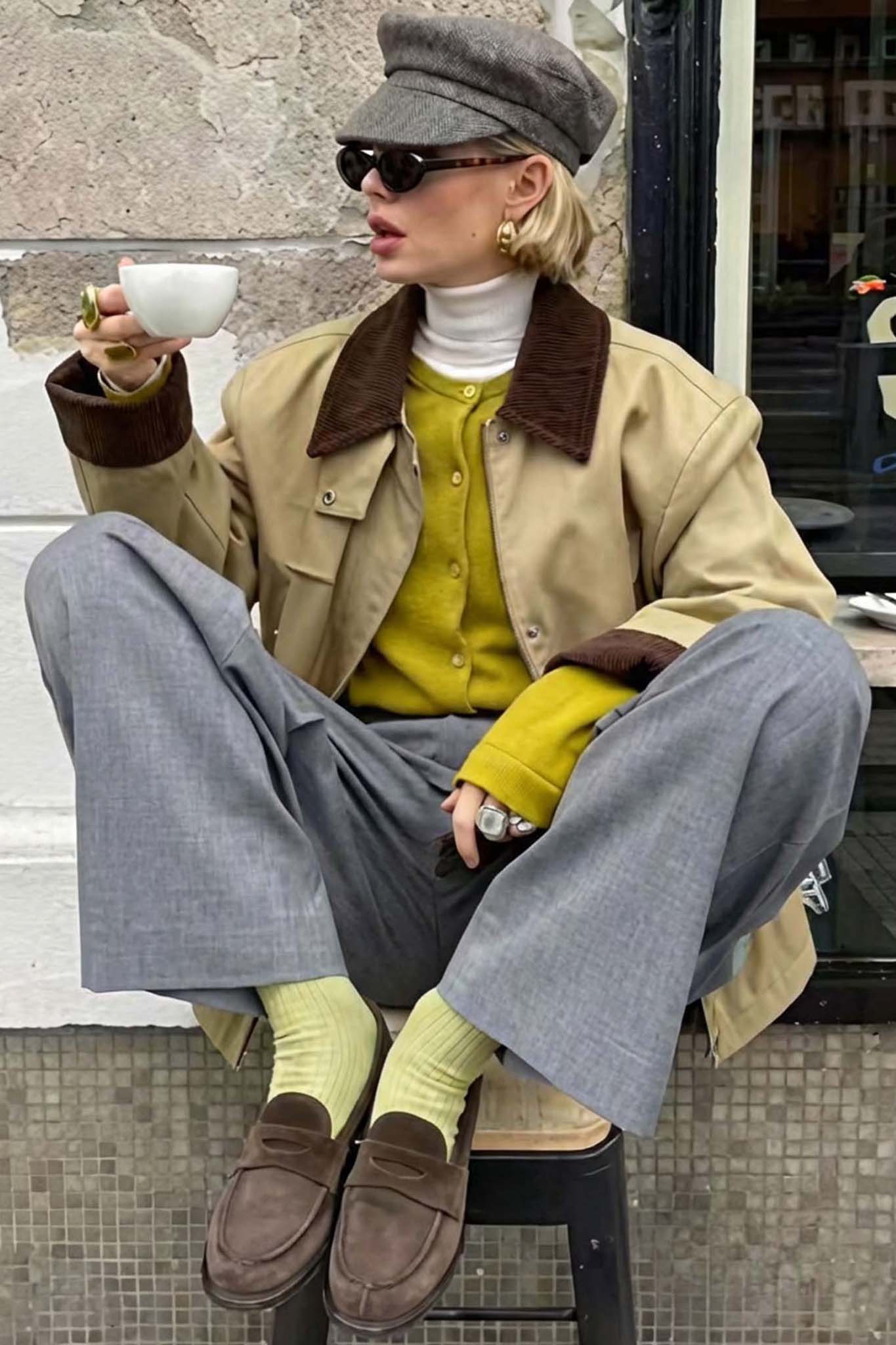 Μπουφάν Utility με σουέτ Γιακά. Το σχέδιο ξεχωρίζει χάρη στον αντίθετο σκούρο καφέ κοτλέ γιακά και τις πρακτικές, μεγάλες τσέπες με καπάκι στο μπροστινό μέρος. Διαθέτει επίσης κλείσιμο με φερμουάρ και κουμπιά σούστες, συνδυάζοντας το διαχρονικό στυλ με τη λειτουργικότητα, δίνοντας χαρακτήρα σε κάθε σας εμφάνιση.