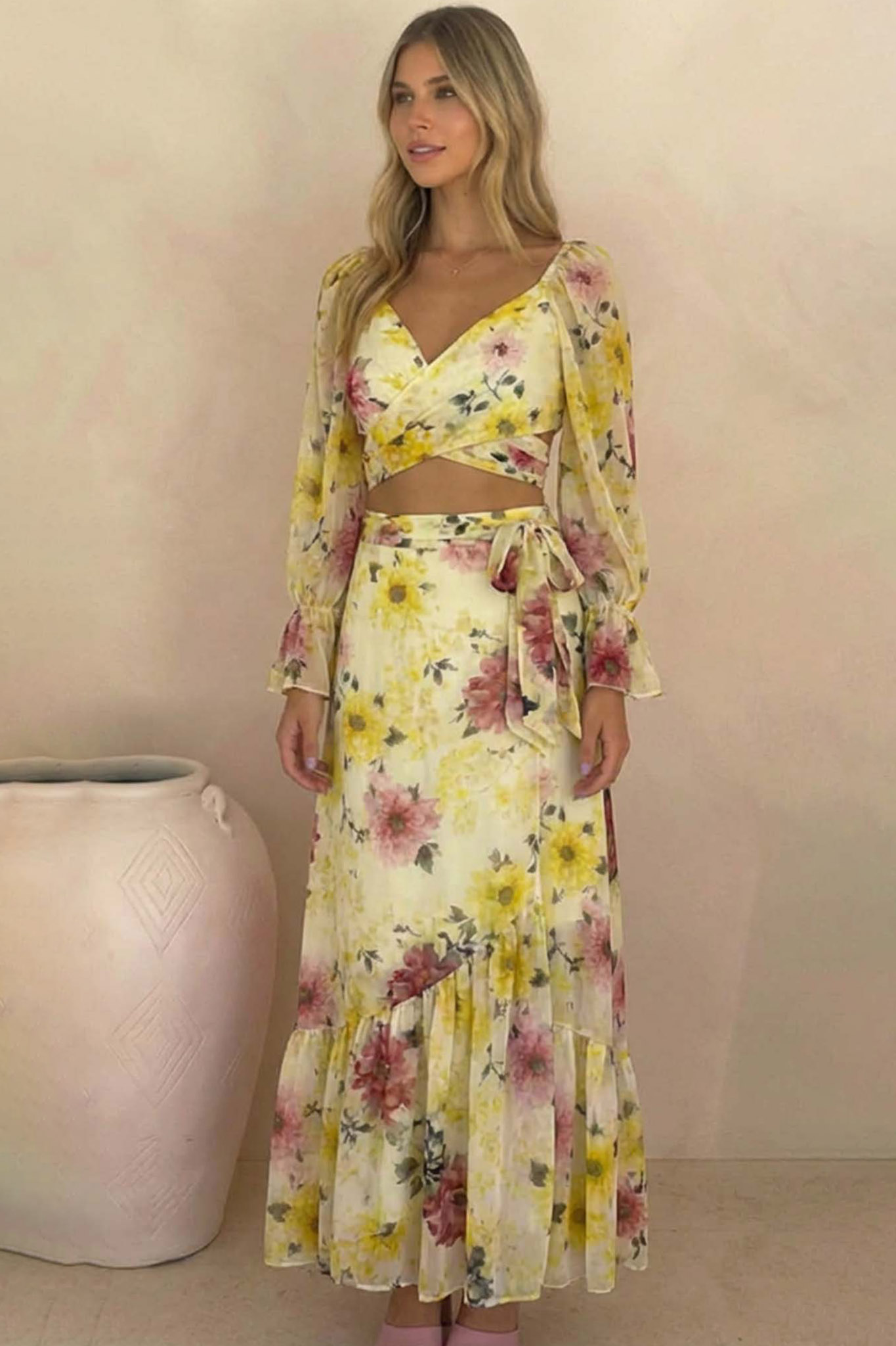 Sunflowerσετ cropped top-μάξι φούστα floral κίτρινο