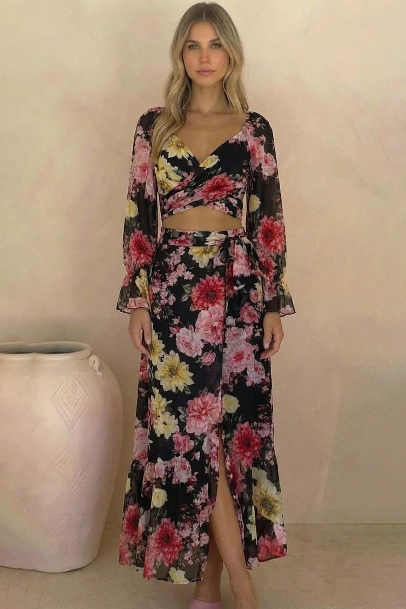Sunflowerσετ cropped top-μάξι φούστα floral μαύρο