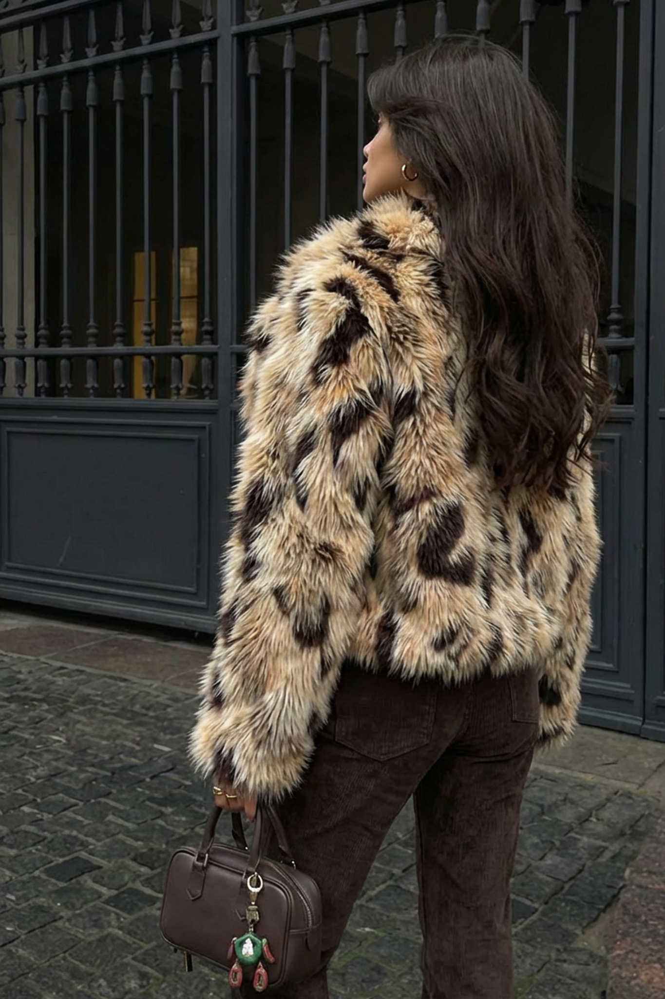 Οικολογική γούνα, μεσαίου μεγέθους. Προσφέρει κομψό αποτέλεσμα και προστασία από το κρύο. Ιδανική επιλογή για iconic καθημερινές εμφανίσεις. Στήθος: 126cm, Μήκος: 55cm