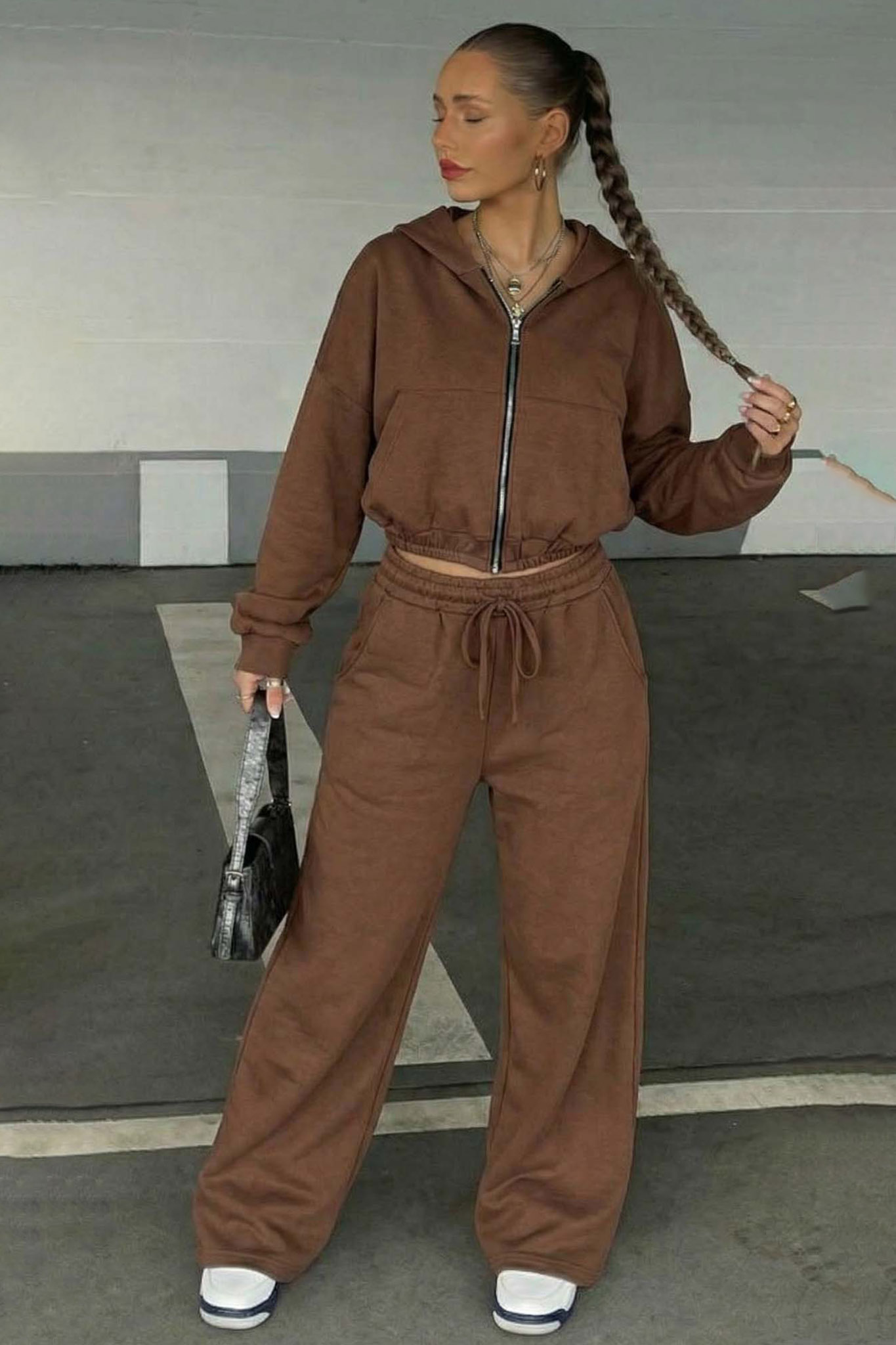Symptomσετ φόρμα φούτερ ζακέτα με παντελόνι καφέ