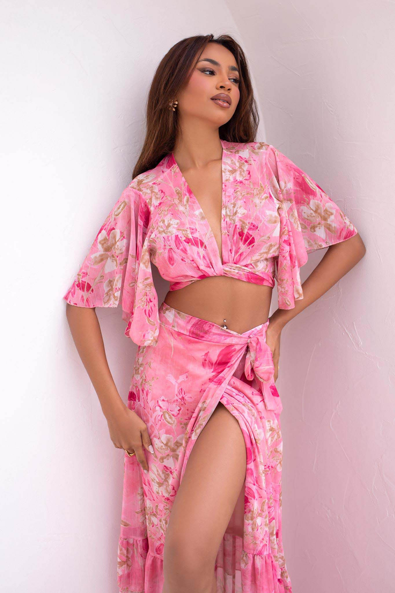 Tangoσετ τοπ φούστα φλοράλ ροζ