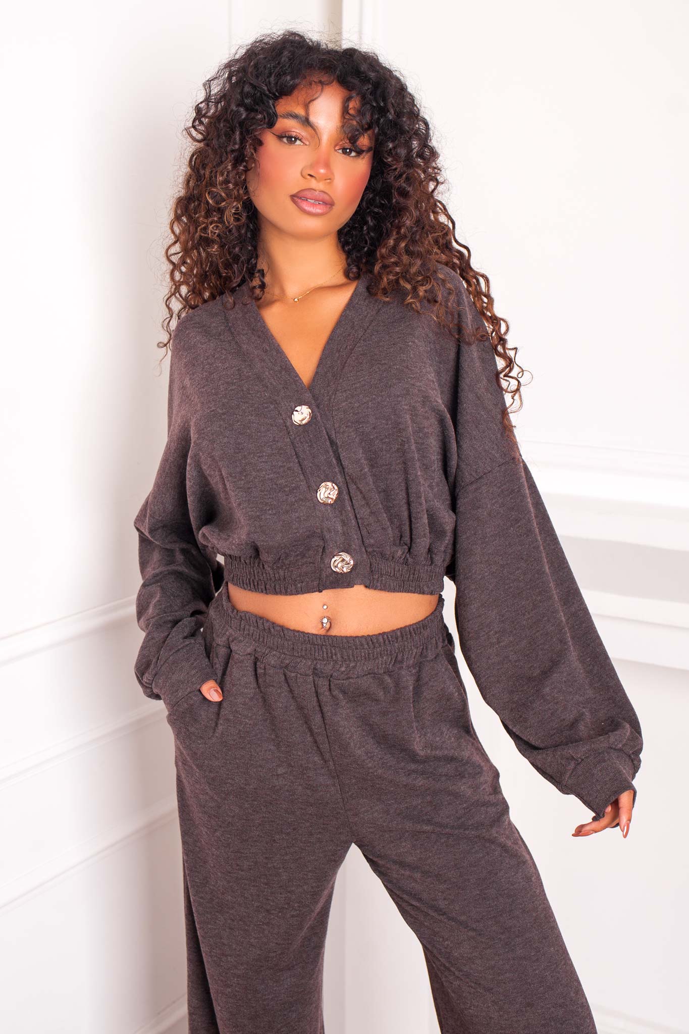 Σετ ζακέτα παντελόνι για casual εμφανίσεις. Το παντελόνι διαθέτει τσέπες και η ζακέτα μεγάλα χρυσά κουμπιά. Ζακέτα: Μήκος 45cm , Στήθος 62cm , Μανίκι 45cm. Παντελόνι: Μήκος 107cm , Μέση 33cm
