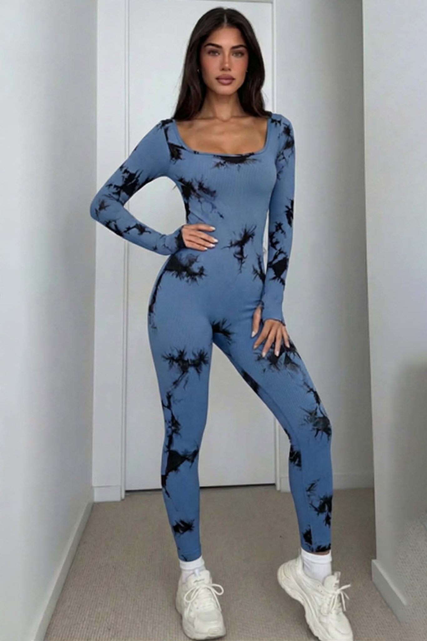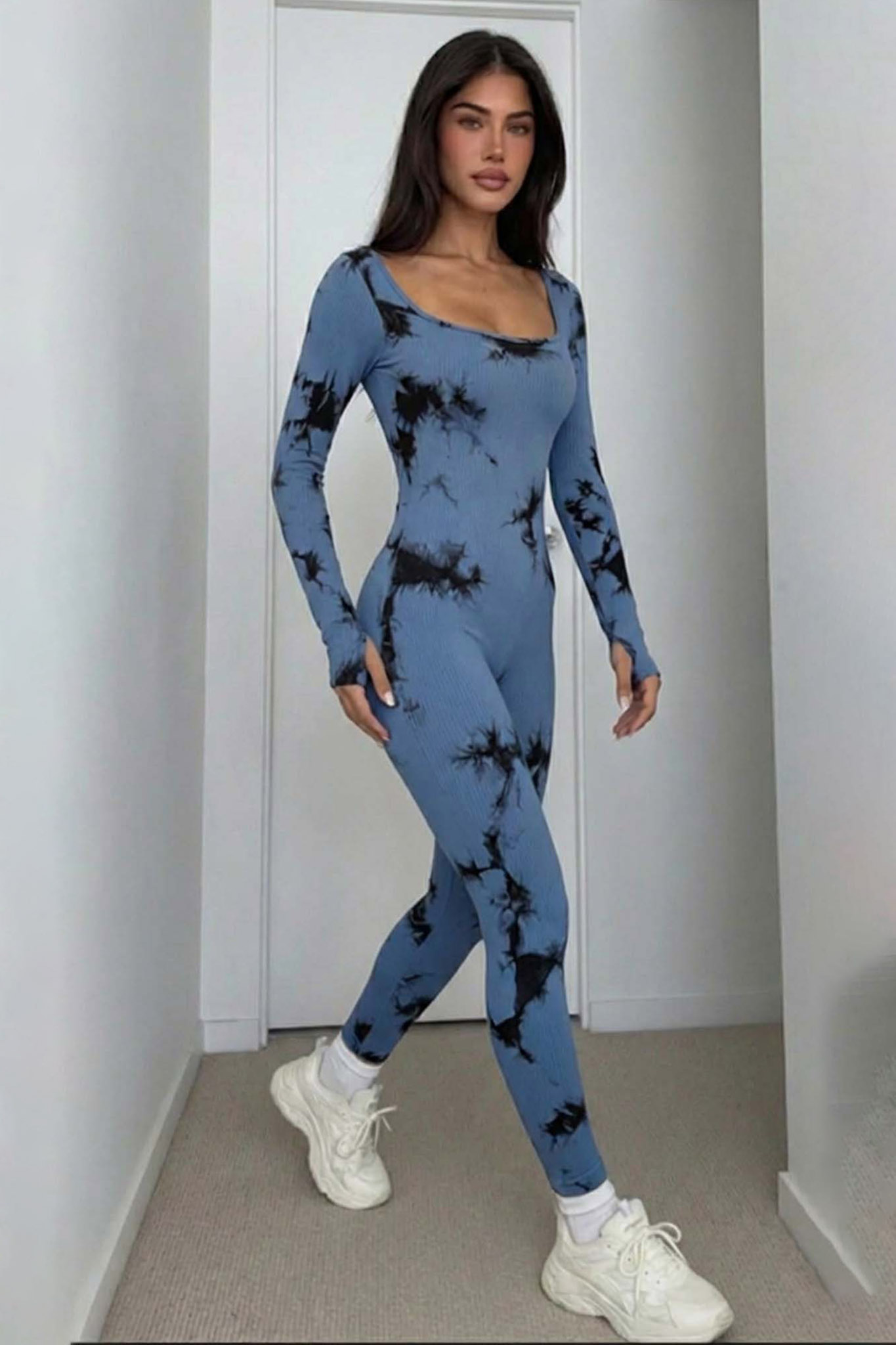 Ολόσωμη φόρμα αποτελεί την επιτομή του σύγχρονου athleisure, συνδυάζοντας την ελαστική ριπ ύφανση που σμιλεύει τη σιλουέτα με ένα δυναμικό urban μοτίβο. Με μακριά μανίκια που διαθέτουν τρύπες για τους αντίχειρες και κολακευτικό scoop neck, προσφέρει απόλυτη άνεση και στυλ, καθιστώντας την ιδανική επιλογή τόσο για την προπόνηση όσο και για statement streetwear εμφανίσεις.