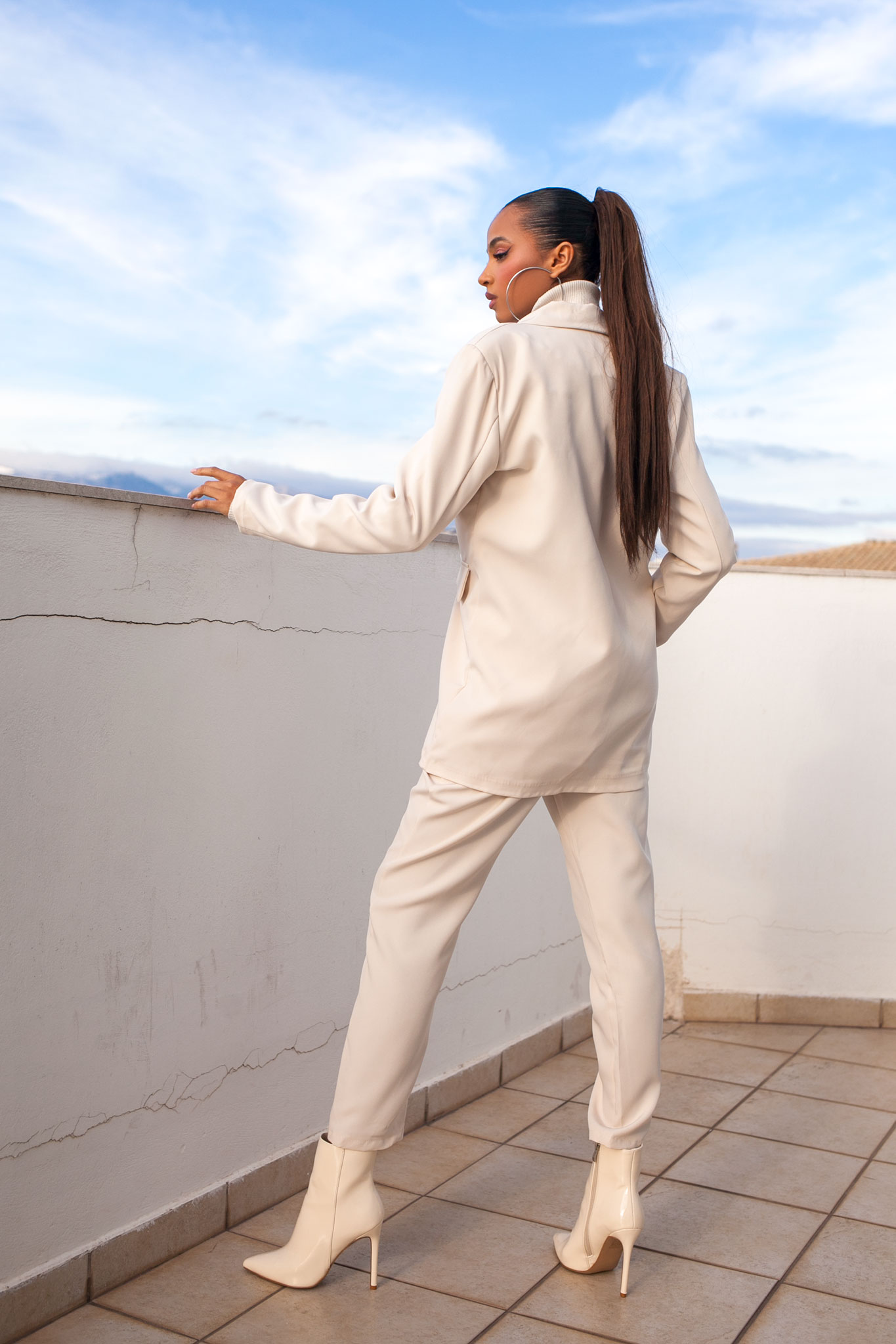 Το σετ κοστουμιού αποτελεί μια εκλεπτυσμένη επιλογή για εντυπωσιακές και στυλάτες εμφανίσεις. Το σακάκι, με τις βάτες, προσδίδει έναν αέρα δύναμης. Η διπλή σειρά κουμπιών προσθέτει μια νότα κλασικής κομψότητας, ενώ το ψηλόμεσο παντελόνι με τις τσέπες και τα δύο κουμπάκια στη μπάσκα ολοκληρώνουν με στυλ το σύνολο. Το λάστιχο στη μέση του παντελονιού εξασφαλίζει την καλή εφαρμογή. Σακάκι Μήκος 76cm στήθος 55cm μανίκι 63cm Παντελόνι μήκος 96cm μέση 38cm