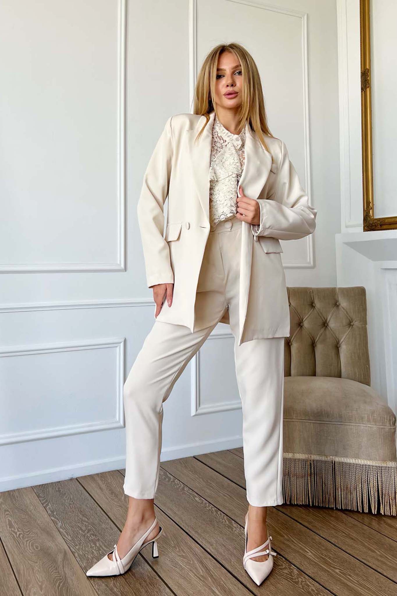 Thiagoσετ σακάκι-παντελόνι μπεζ