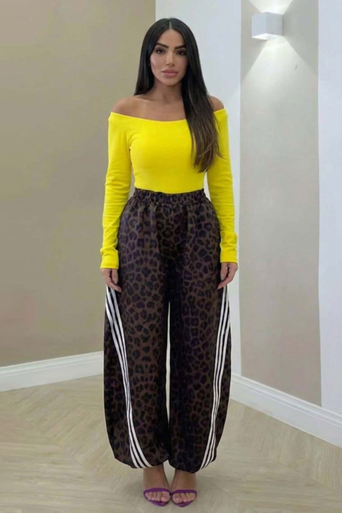 Παντελόνι λεοπάρ σε στυλ φόρμας με ιδιαίτερες ρίγες στο πλάι ,
