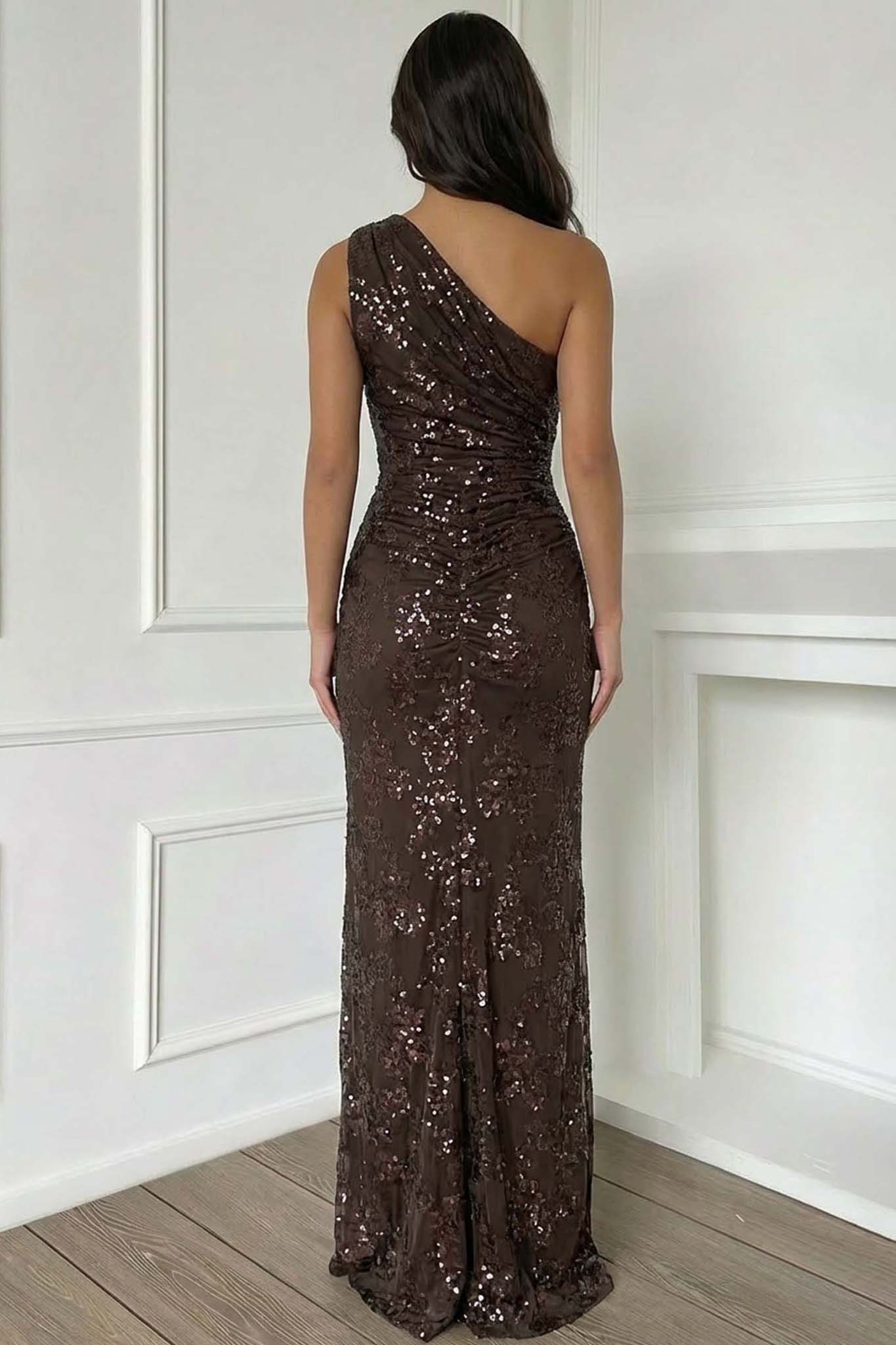 ThroneΦόρεμα Μάξι Με Παγιέτα καφέ