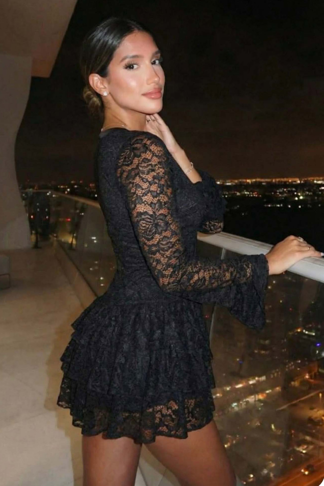 Μίνι φόρεμα- σορτς το οποίο αποτελεί την επιτομή της βραδινής κομψότητας, συνδυάζοντας την πολυτέλεια της δαντέλας με μια παιχνιδιάρικη διάθεση χάρη στα βολάν στη φούστα. Με κολακευτικό V ντεκολτέ, μακριά μανίκια και ενσωματωμένο σορτς για απόλυτη άνεση.