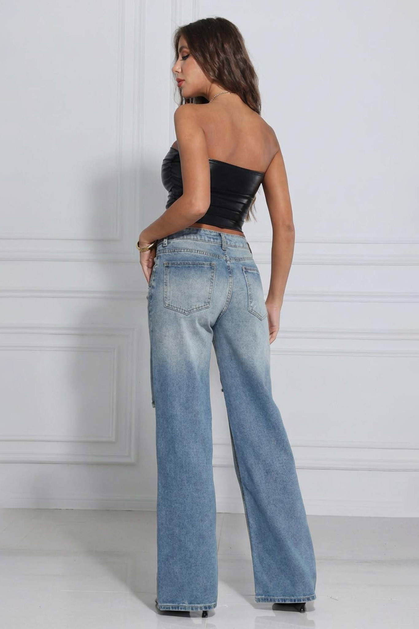 Τζιν παντελόνι με άνετη και φαρδιά γραμμή και με τολμηρά σκισίματα που χαρίζουν έναν ανεπιτήδευτα cool χαρακτήρα.