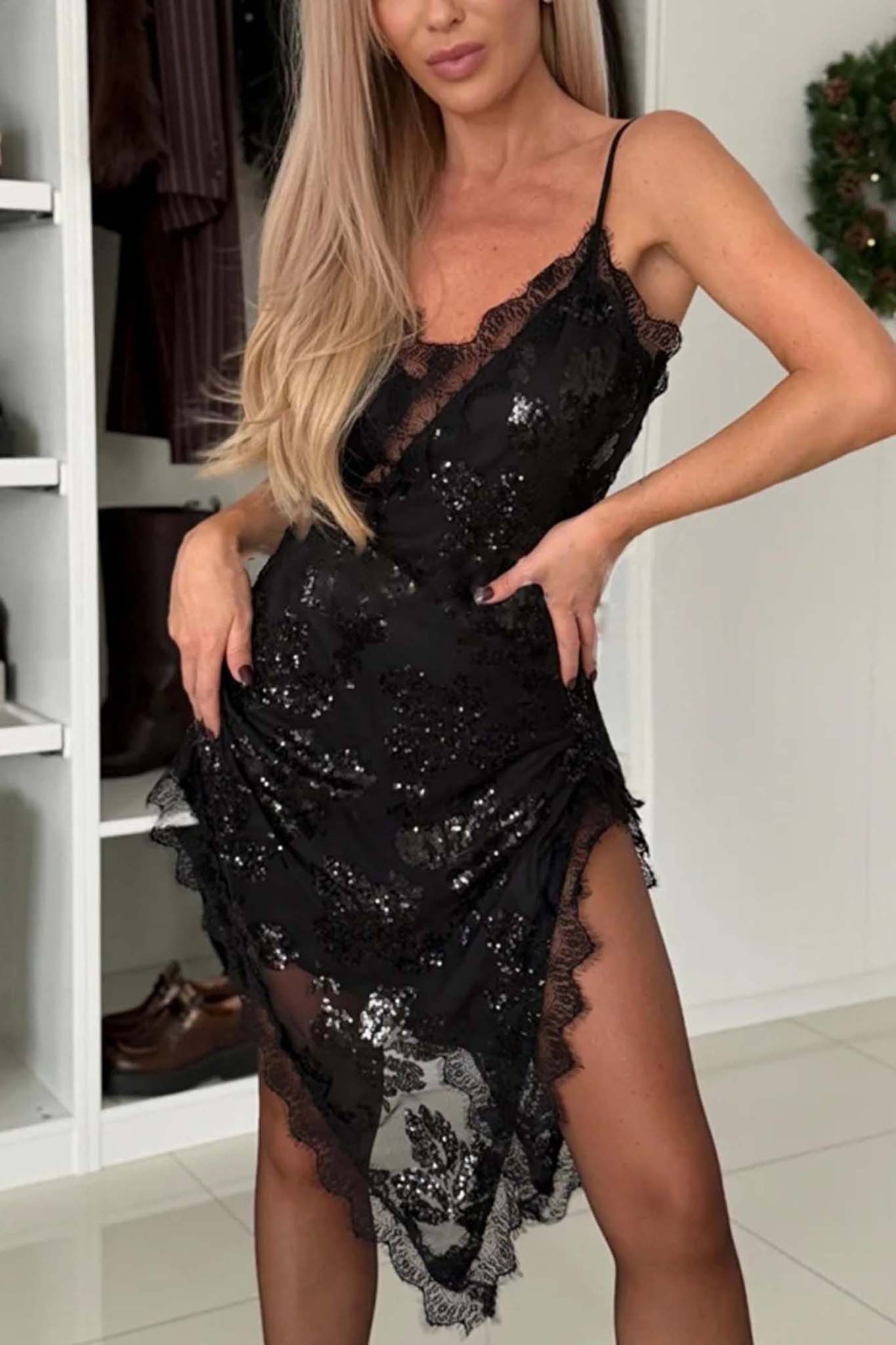Φόρεμα σατέν, με παγιέτα και δαντέλα. Εφαρμοστό και άνετο. ’νοιγμα στο ντεκολτέ. Προσφέρει ένα glam και luxury αποτέλεσμα. Ιδανικό για glamorous look φορεμένο μόνο του, ή με τζιν για χαλαρό καθημερινό στιλ.