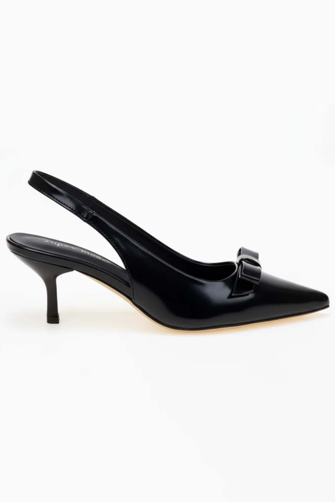 Γόβες λουστρίνι με φιόγκο στο μπροστινό μέρος και μύτη.