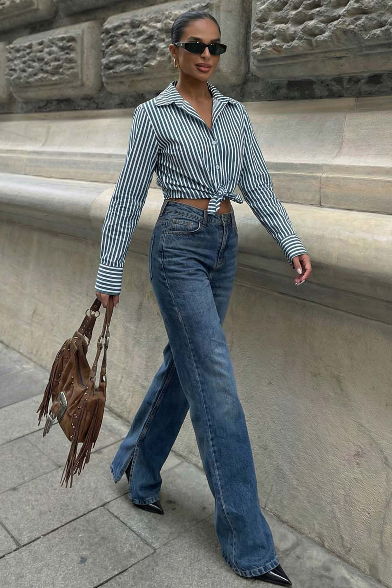 Πουκάμισο crop ριγέ με δέσιμο το τελείωμα.