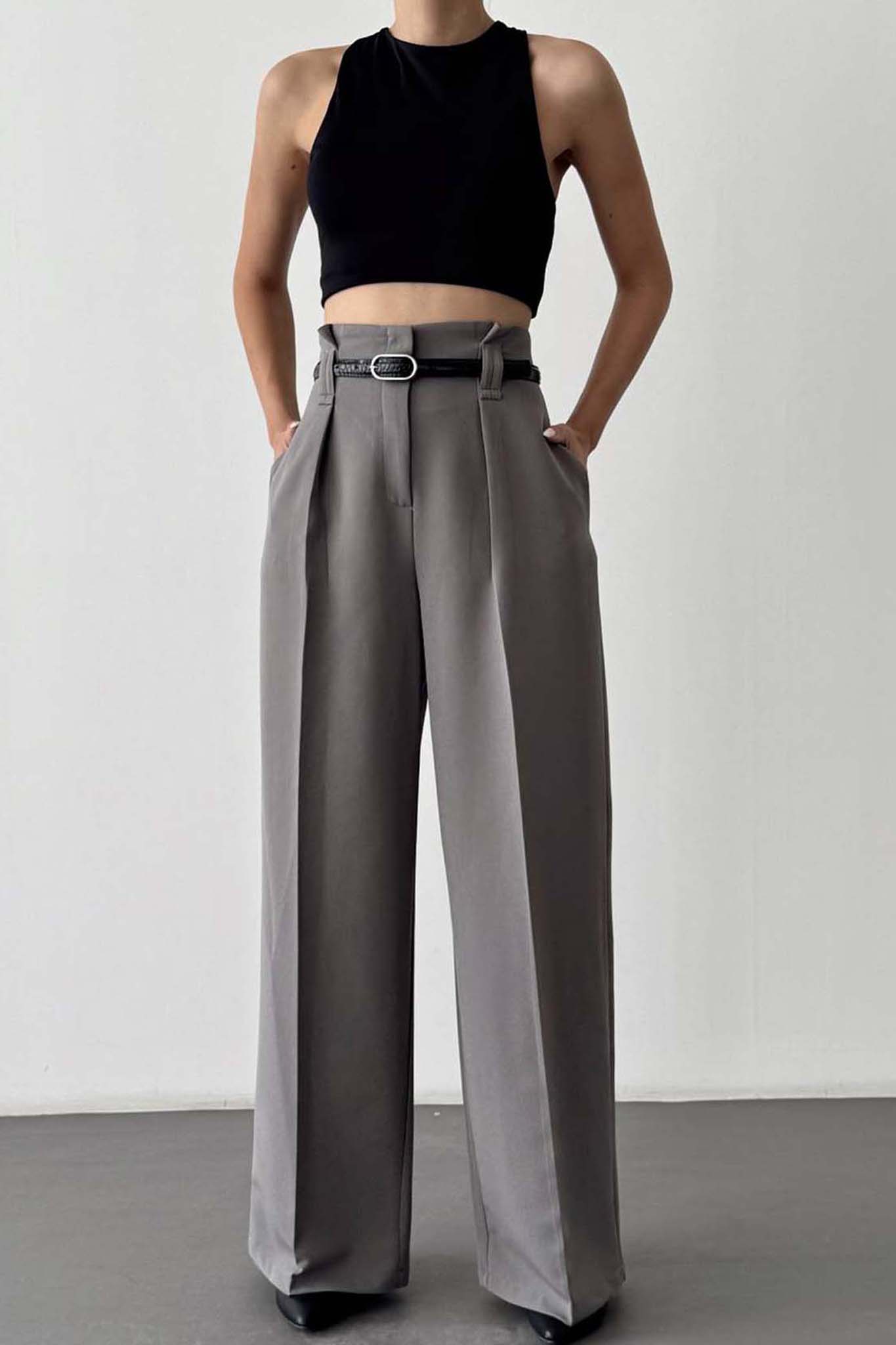 Ψηλόμεσο παντελόνι σε φαρδιά γραμμή με πιέτες και ζώνη. Ιδανικό για κομψές εμφανίσεις στο γραφείο και για all day look