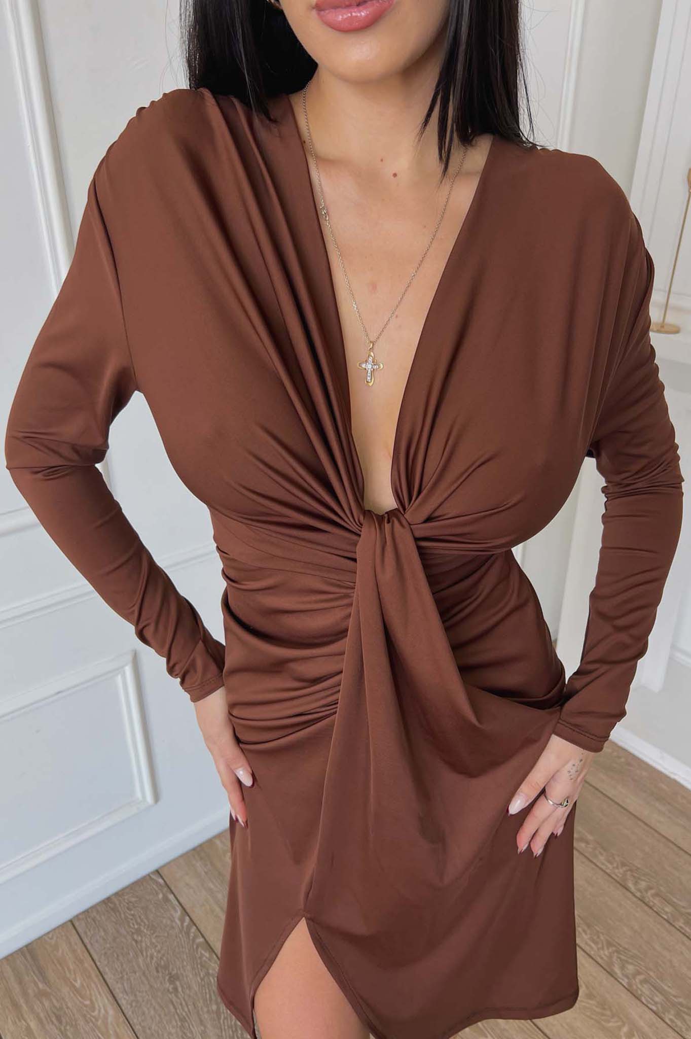 Μίντι φόρεμα φόρεμα με σούρες και σκίσιμο μπροστά που αναδεικνύει τη σιλουέτα. Μήκος 115cm, στήθος 45cm, μανίκι 60cm