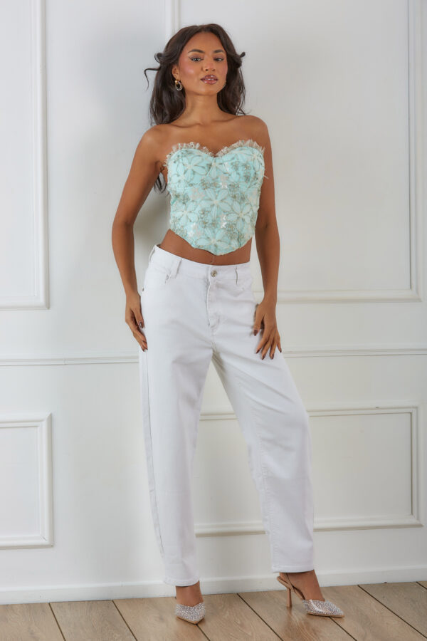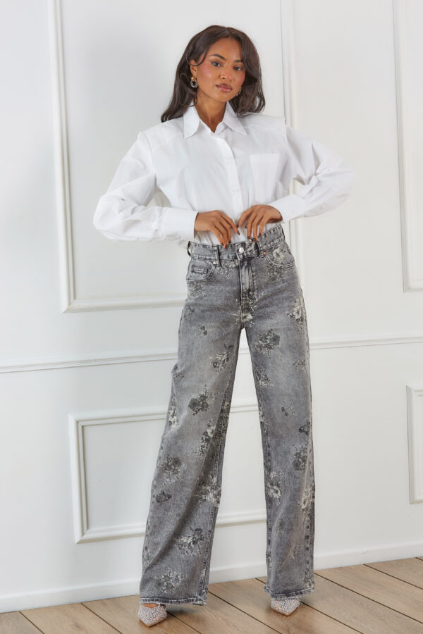 Ψηλόμεσο παντελόνι με τσέπες και κουμπάκια στη μπάσκα. Μήκος 108cm μέση 34cm