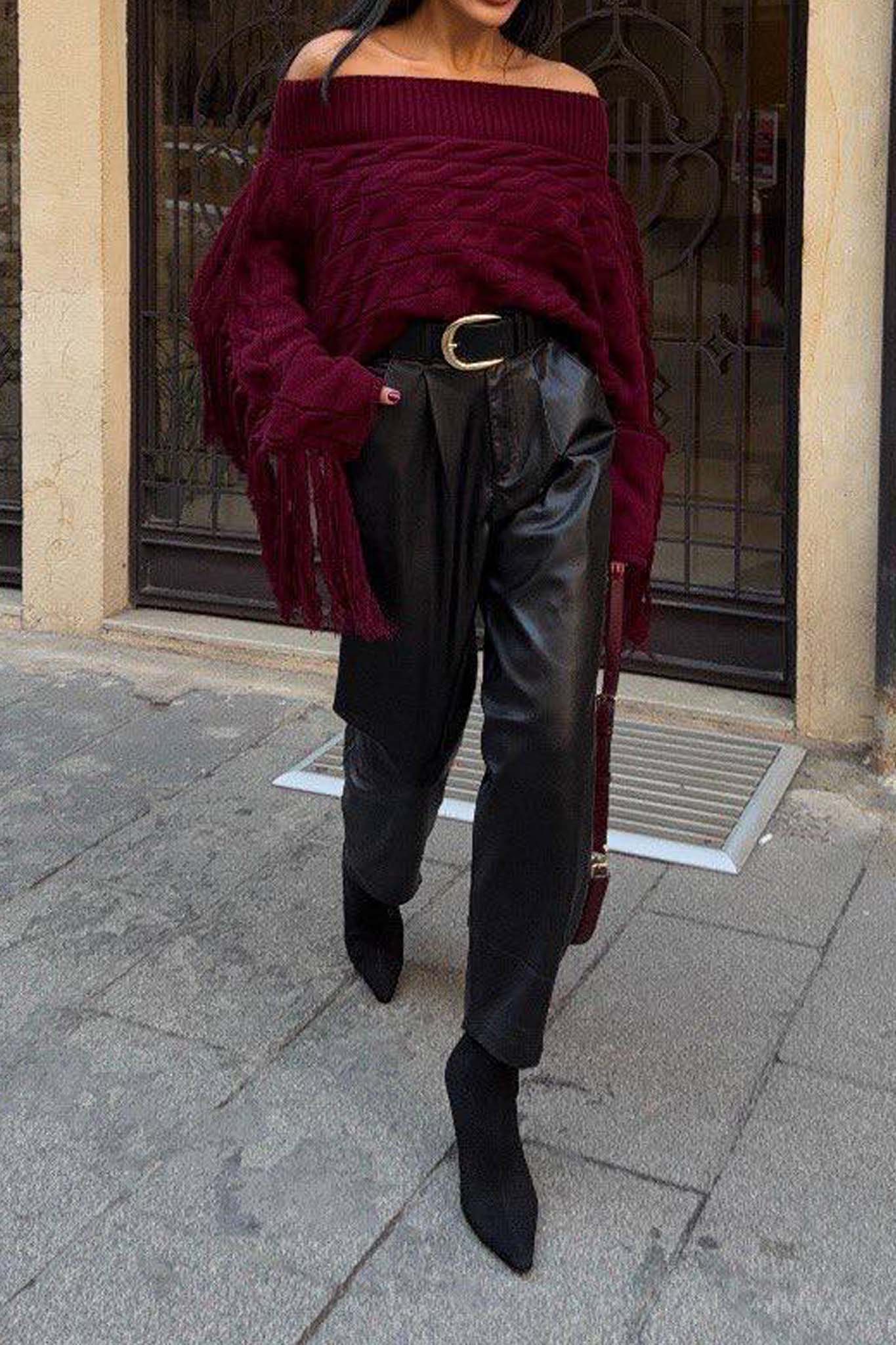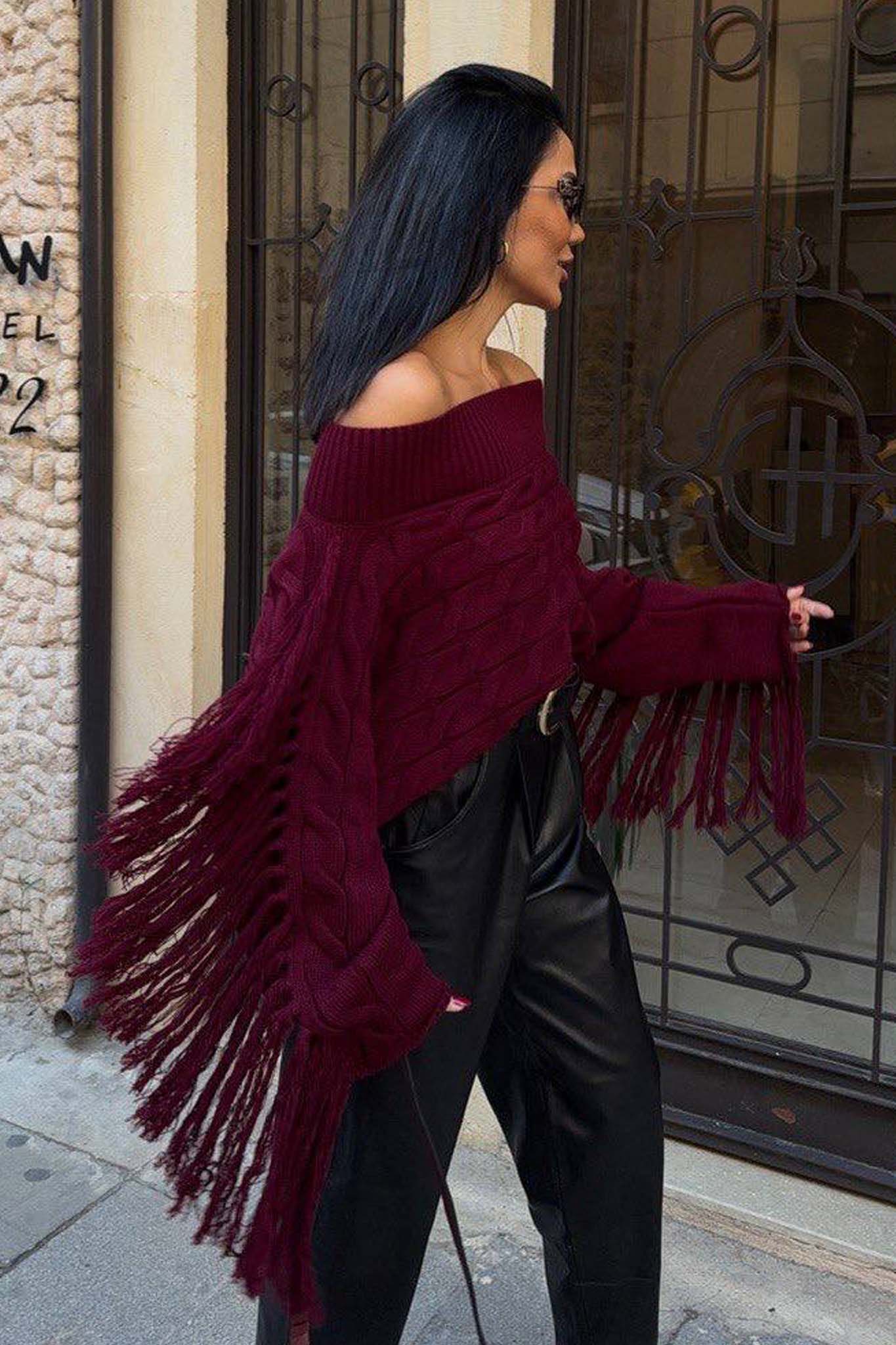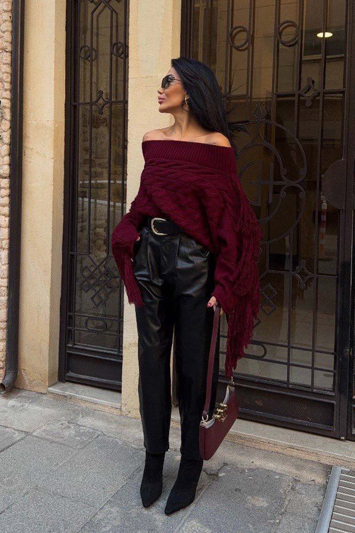Vidaπλεκτή μπλούζα μπορντό