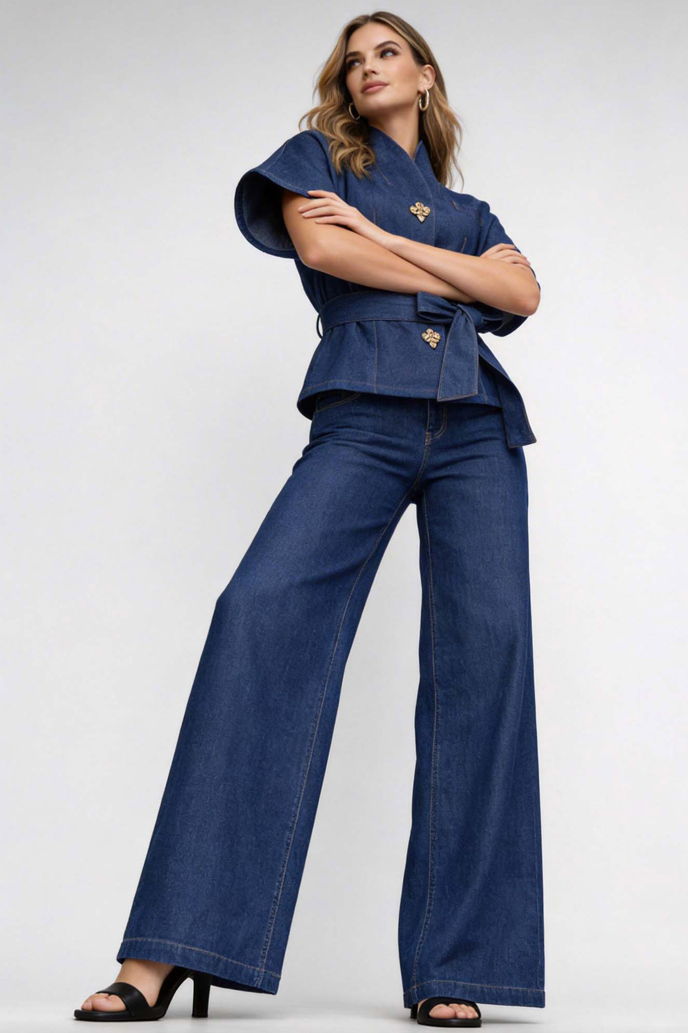 Κρουαζέ τοπ με κιμονό μανίκια & Wide-Leg παντελόνα.