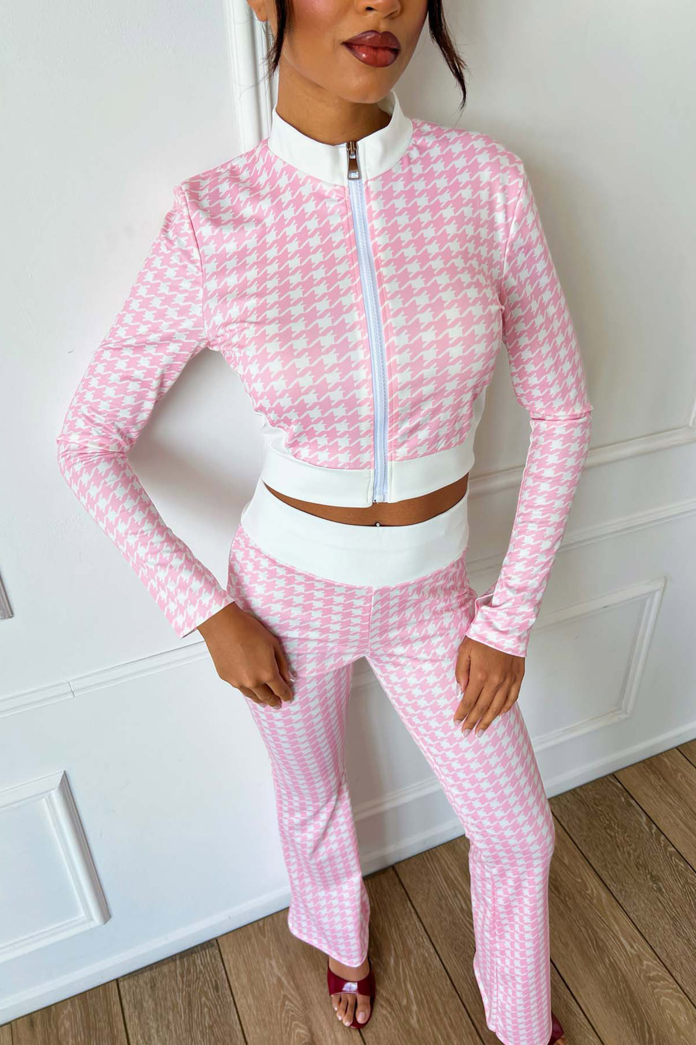 Vixenσετ κροπ ζακέτα με κολάν ροζ