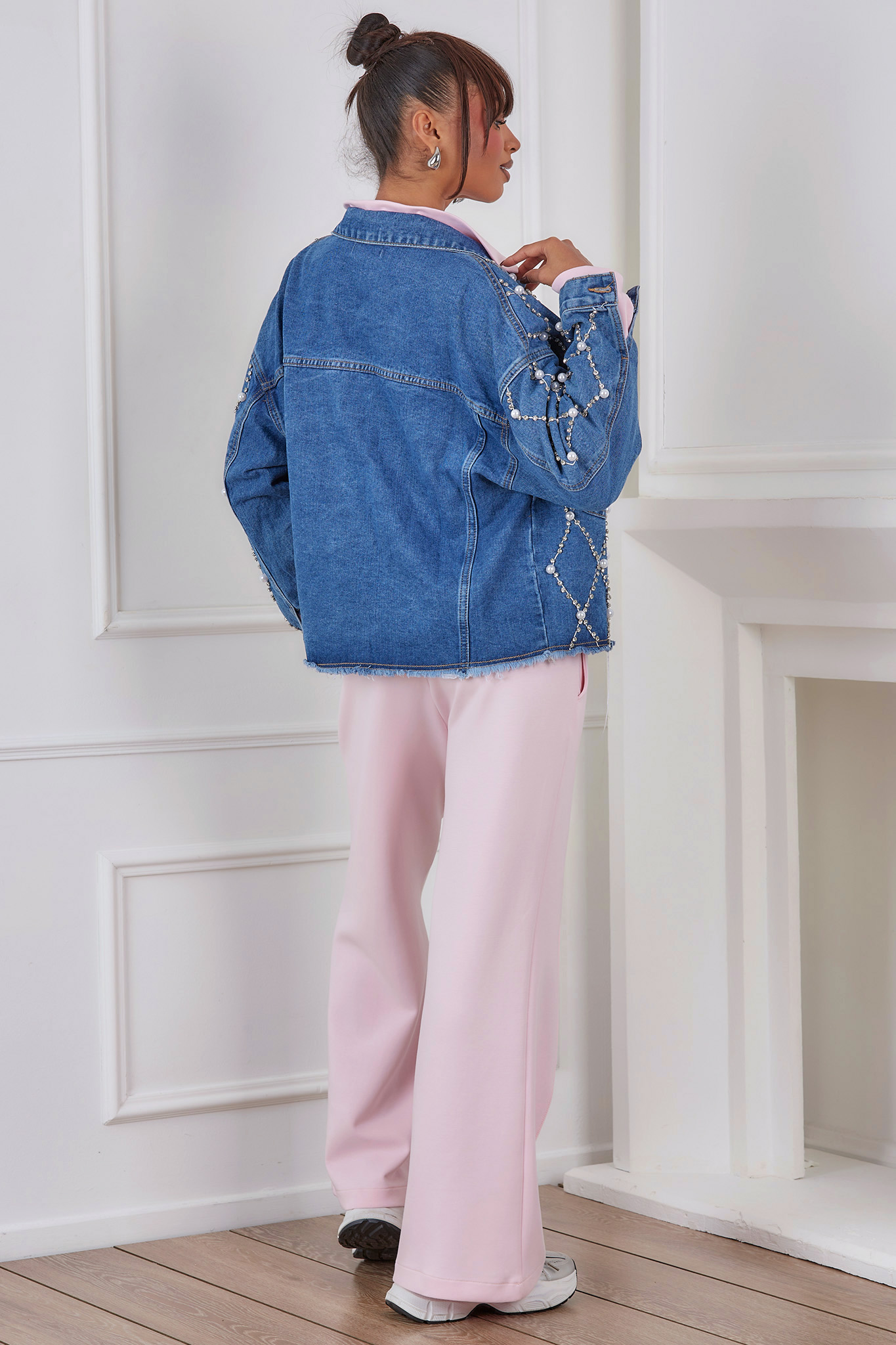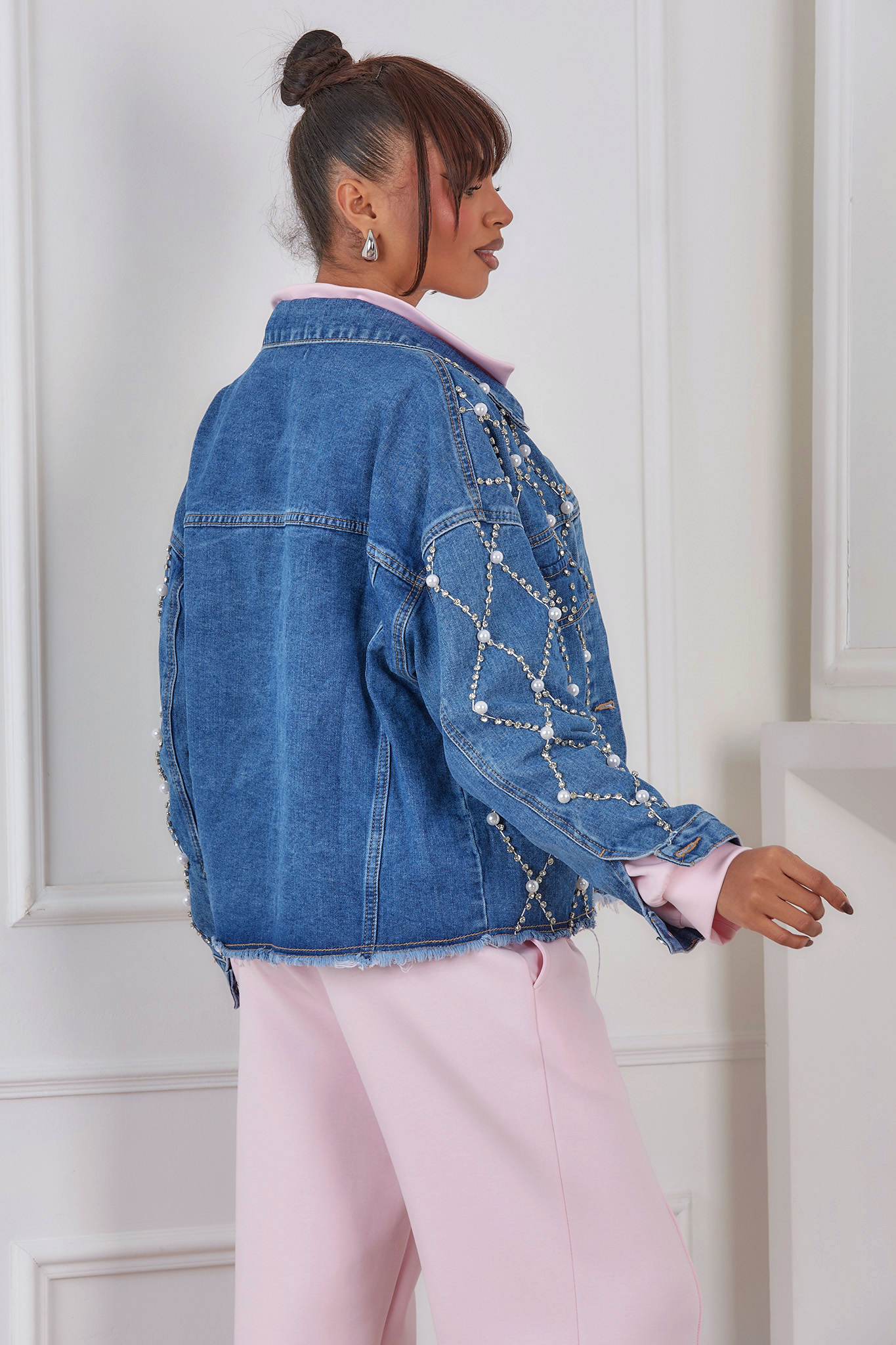 Τζιν τζάκετ με στρας. Μήκος 54cm, μανικι 47cm, στηθος 54cm.