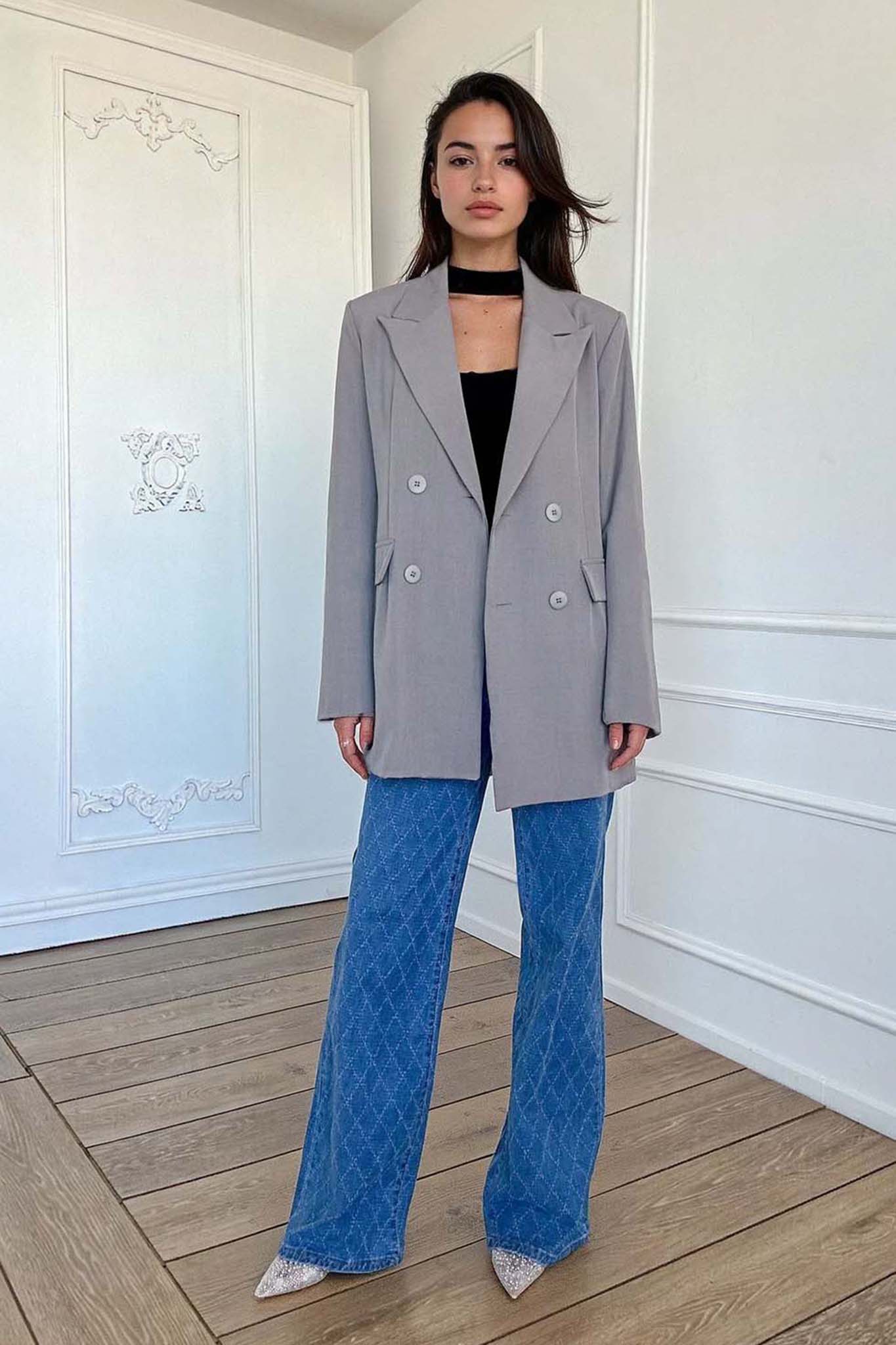 Σακάκι με σταυρωτό κούμπωμα. Μήκος 75cm στήθος 55cm μανίκι 63cm